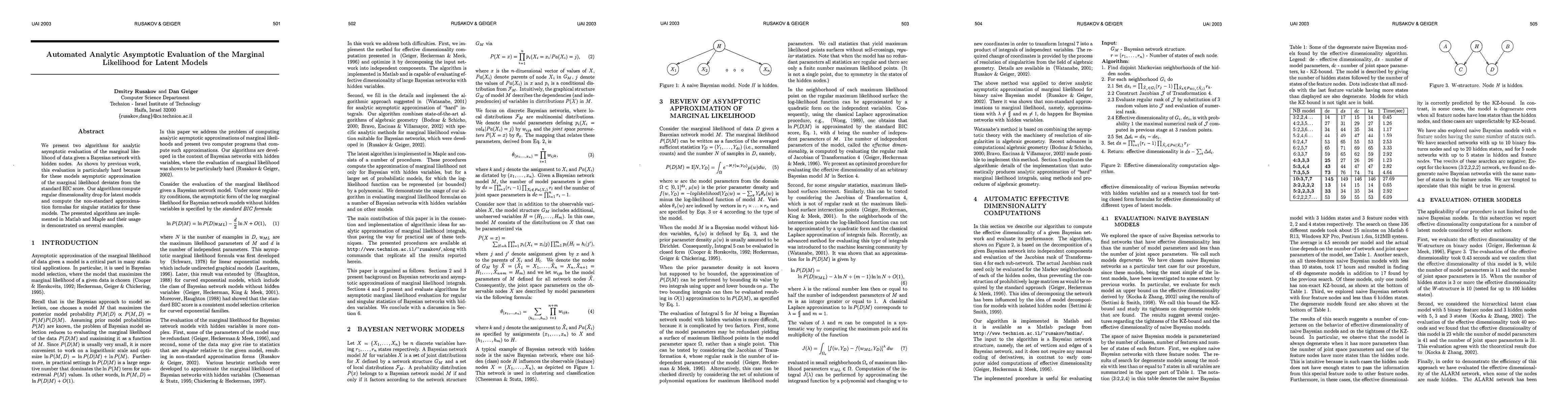 This paper introduces two algorithms for the analytic asymptotic evaluation of the marginal likelihood in latent Bayesian networks, addressing challenges in dimensionality drop and singular statistics computation. The algorithms are implemented in Matlab and Maple, demonstrating their application to Bayesian networks with hidden variables.