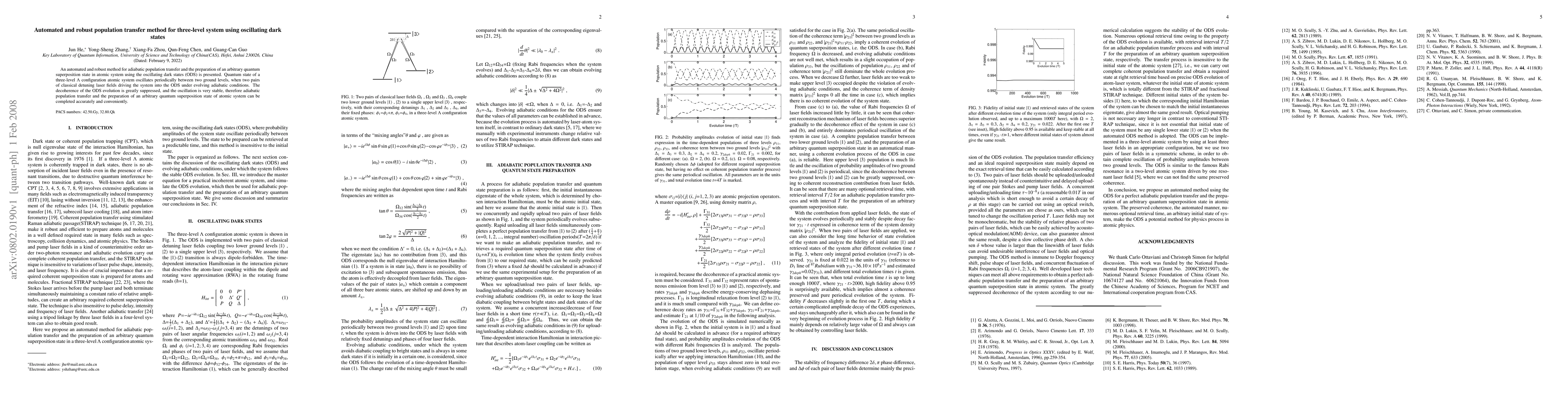 This paper presents an automated method for adiabatic population transfer in a three-level atomic system using oscillating dark states (ODS), driven by classical detuning laser fields. The method suppresses decoherence and enables stable, accurate preparation of arbitrary quantum superposition states.