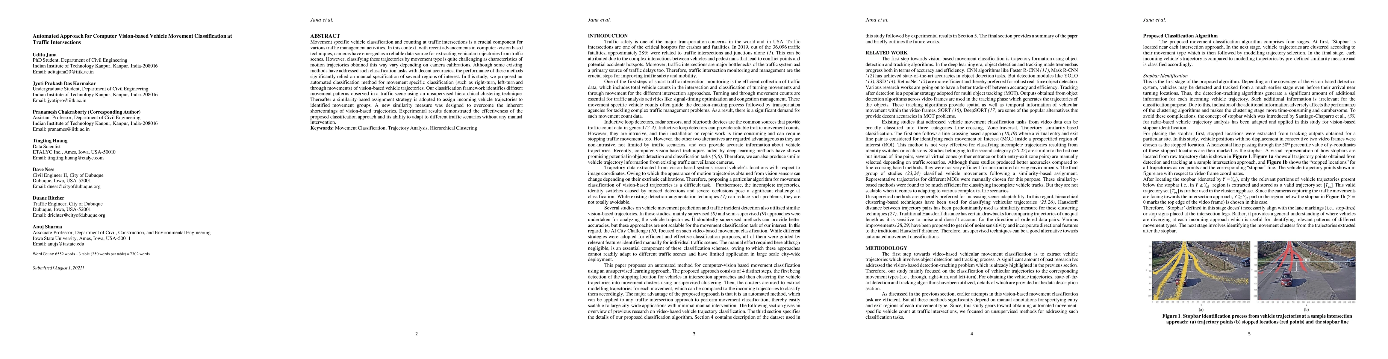 This paper proposes an automated method for classifying vehicle movements (right-turn, left-turn, and through) at traffic intersections using computer vision. It employs unsupervised hierarchical clustering and a new similarity measure to identify and assign vehicle trajectories, demonstrating effective performance without manual intervention.