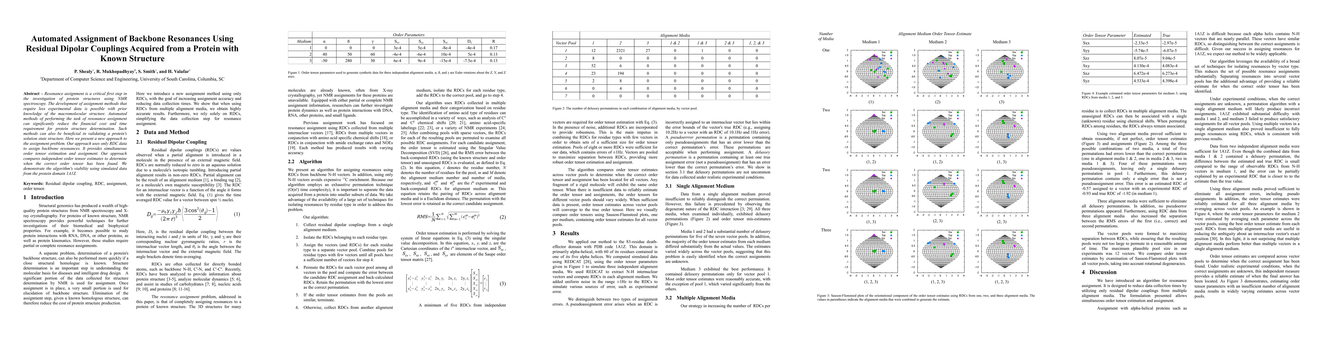 This paper introduces an automated method for assigning backbone resonances using residual dipolar couplings (RDCs) from a protein with a known structure, aiming to reduce the reliance on extensive NMR data. The proposed approach estimates order tensors and assigns backbone resonances simultaneously, demonstrating its effectiveness through simulations on the 1A1Z protein domain.