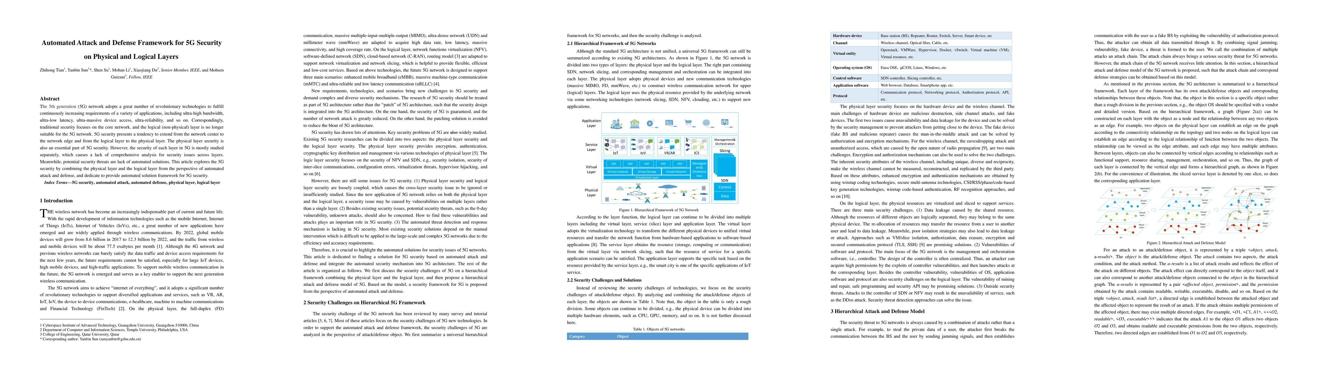 This paper proposes an automated attack and defense framework for 5G security that integrates both physical and logical layers, addressing the gap in comprehensive security analysis across these layers and providing automated solutions to potential threats.