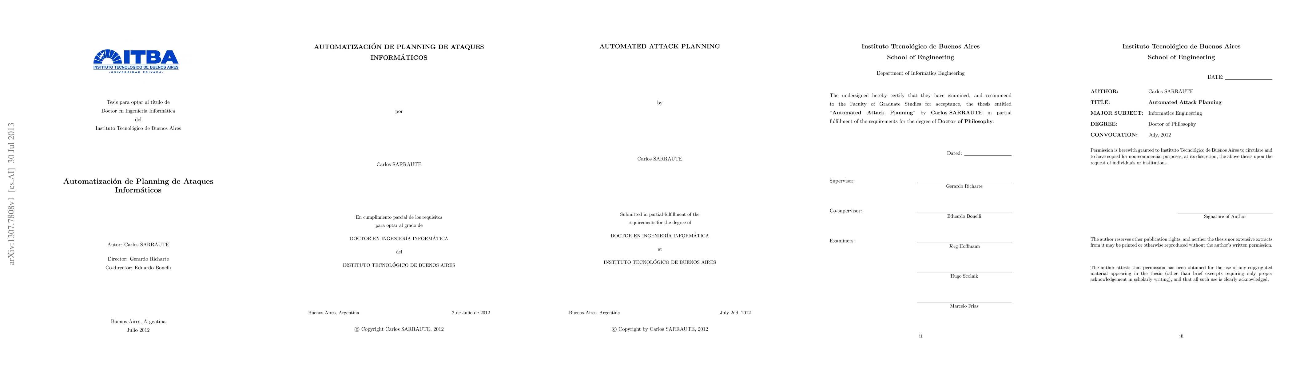 Penetration Testing is a methodology for assessing network security, by generating and executing possible attacks. Doing so automatically allows for regular and systematic testing. A key question then is how to automatically generate the attacks. A natural way to address this issue is as an attack planning problem. In this thesis, we are concerned with the specific context of regular automated pentesting, and use the term "attack planning" in that sense. The following three research directions are investigated. First, we introduce a conceptual model of computer network attacks, based on an analysis of the penetration testing practices. We study how this attack model can be represented in the PDDL language. Then we describe an implementation that integrates a classical planner with a penetration testing tool. This allows us to automatically generate attack paths for real world pentesting scenarios, and to validate these attacks by executing them. Secondly, we present efficient probabilistic planning algorithms, specifically designed for this problem, that achieve industrial-scale runtime performance (able to solve scenarios with several hundred hosts and exploits). These algorithms take into account the probability of success of the actions and their expected cost (for example in terms of execution time, or network traffic generated). Finally, we take a different direction: instead of trying to improve the efficiency of the solutions developed, we focus on improving the model of the attacker. We model the attack planning problem in terms of partially observable Markov decision processes (POMDP). This grounds penetration testing in a well-researched formalism. POMDPs allow the modelling of information gathering as an integral part of the problem, thus providing for the first time a means to intelligently mix scanning actions with actual exploits.