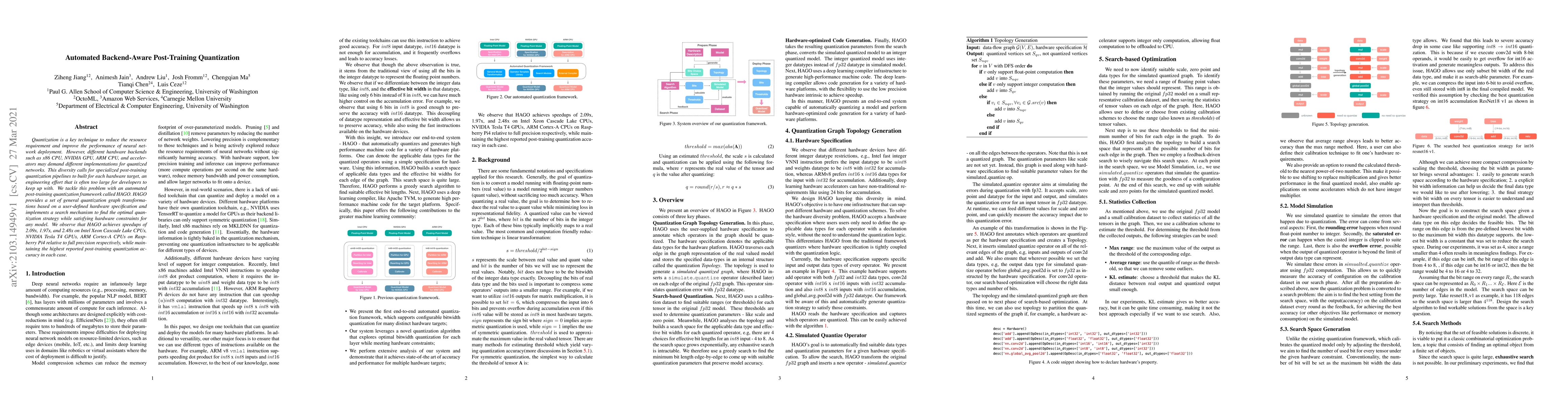 This paper introduces HAGO, an automated framework for backend-aware post-training quantization, which optimizes neural networks for various hardware targets. HAGO achieves significant performance improvements across different hardware while maintaining high accuracy.