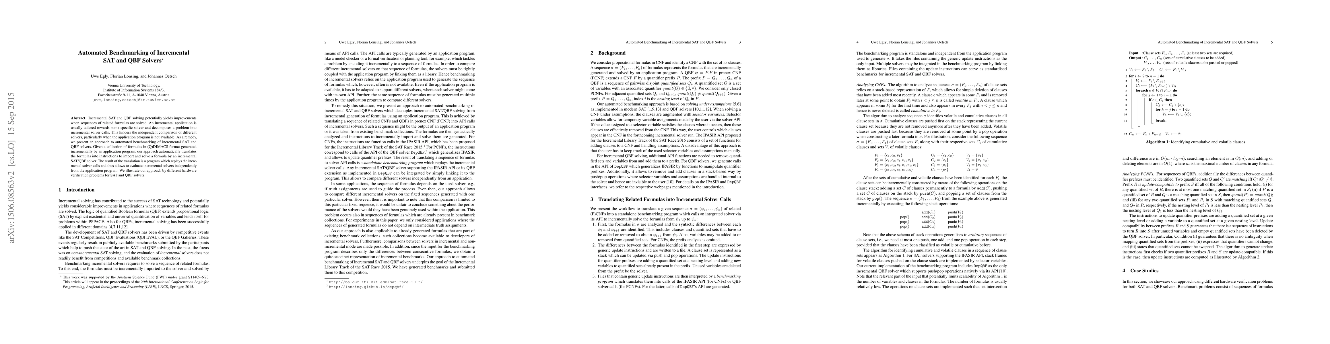 This paper presents an automated benchmarking method for incremental SAT and QBF solvers, enabling independent evaluation by translating incrementally generated formulas into solver instructions, thus overcoming the limitation of application-specific incremental solving. The approach is demonstrated through various hardware verification problems.
