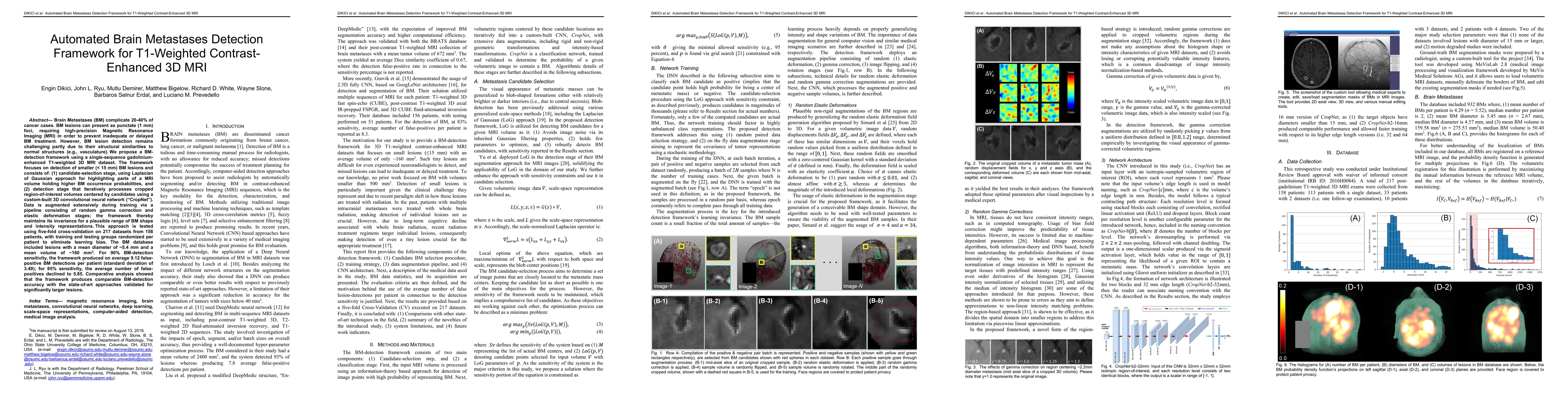 This paper proposes an automated framework for detecting small brain metastases using gadolinium-enhanced T1-weighted 3D MRI, employing a Laplacian of Gaussian approach and a custom 3D convolutional neural network. The framework achieves high sensitivity with minimal false positives, comparable to state-of-the-art methods for larger lesions.