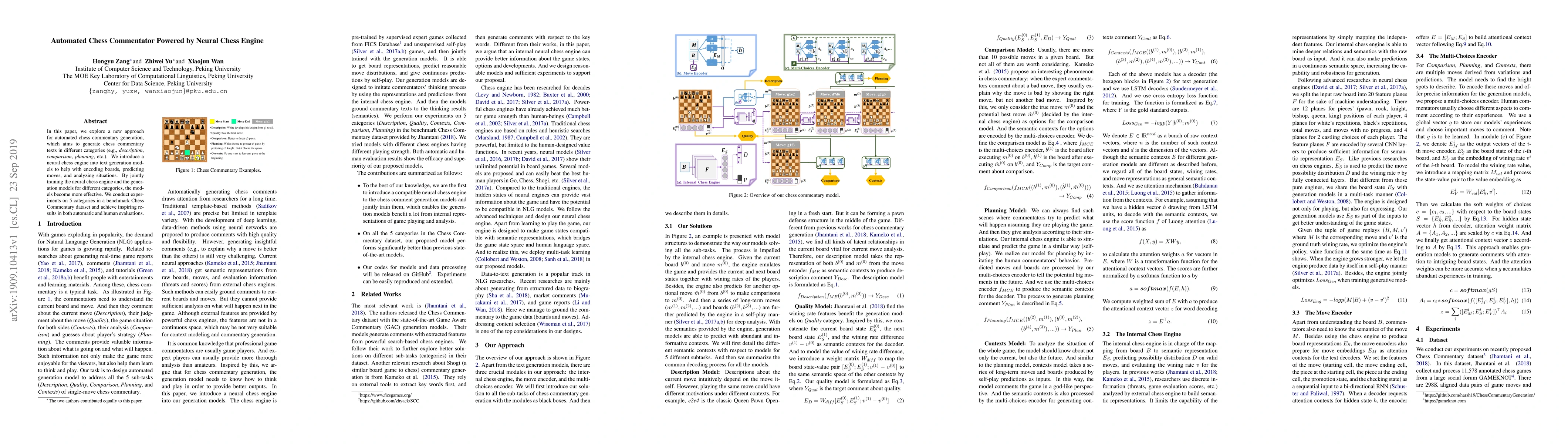 The research introduces a neural chess engine into text generation models for automated chess commentary generation, encoding boards, predicting moves, and analyzing situations. The neural chess engine and generation models for different categories are jointly trained to enhance effectiveness.