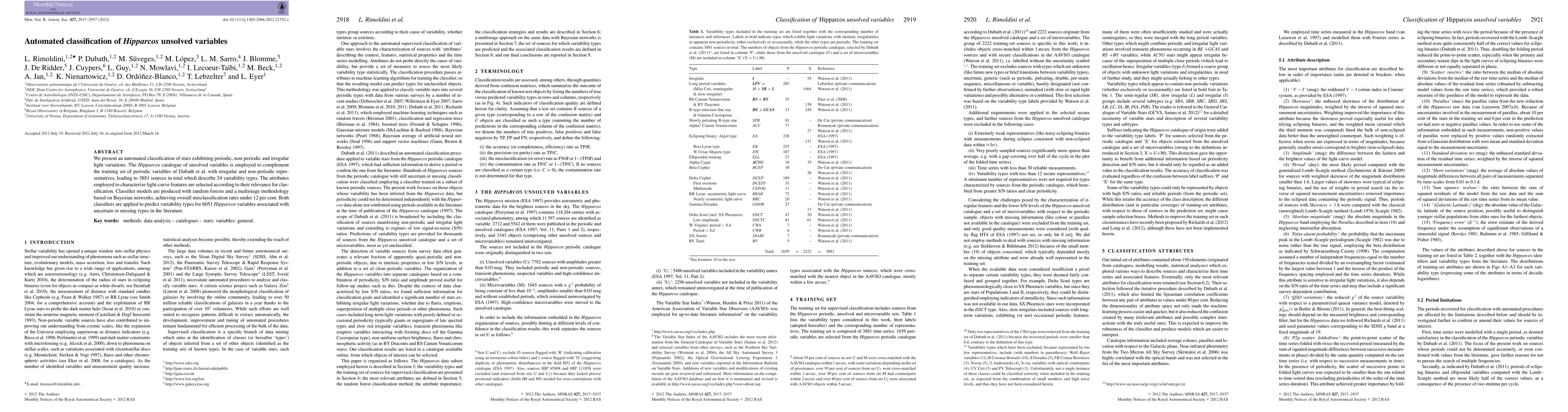 This paper automates the classification of Hipparcos unsolved variable stars into periodic, non-periodic, and irregular types using a dataset of 3881 sources representing 24 variability types. It employs random forests and Bayesian networks to achieve less than 12% misclassification rates, successfully predicting variability types for 6051 uncertain Hipparcos variables.