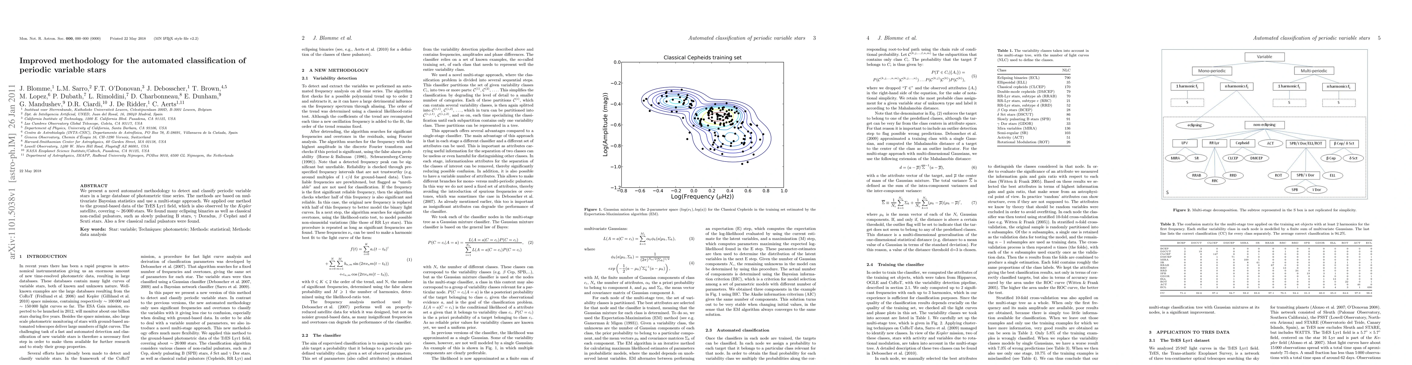 We present a novel automated methodology to detect and classify periodic variable stars in a large database of photometric time series. The methods are based on multivariate Bayesian statistics and use a multi-stage approach. We applied our method to the ground-based data of the TrES Lyr1 field, which is also observed by the Kepler satellite, covering ~26000 stars. We found many eclipsing binaries as well as classical non-radial pulsators, such as slowly pulsating B stars, Gamma Doradus, Beta Cephei and Delta Scuti stars. Also a few classical radial pulsators were found.