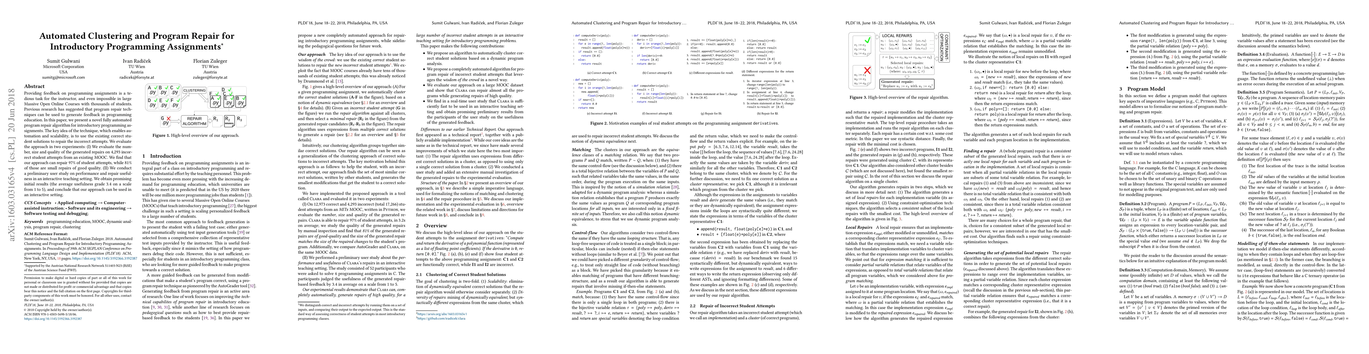 This paper introduces an automated program repair algorithm for introductory programming assignments that leverages correct student solutions to fix incorrect attempts. The algorithm repairs 97% of student errors, with 81% of those repairs being small and high-quality, as demonstrated through experiments on a large MOOC dataset. Preliminary user study results indicate promising performance and perceived usefulness.