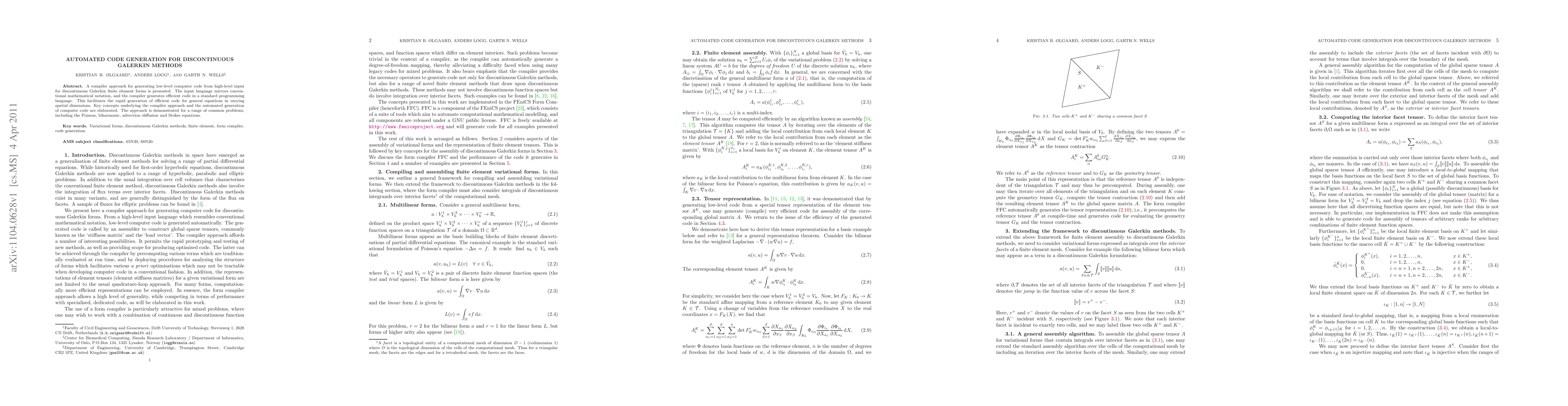 A compiler approach for generating low-level computer code from high-level input for discontinuous Galerkin finite element forms is presented. The input language mirrors conventional mathematical notation, and the compiler generates efficient code in a standard programming language. This facilitates the rapid generation of efficient code for general equations in varying spatial dimensions. Key concepts underlying the compiler approach and the automated generation of computer code are elaborated. The approach is demonstrated for a range of common problems, including the Poisson, biharmonic, advection--diffusion and Stokes equations.