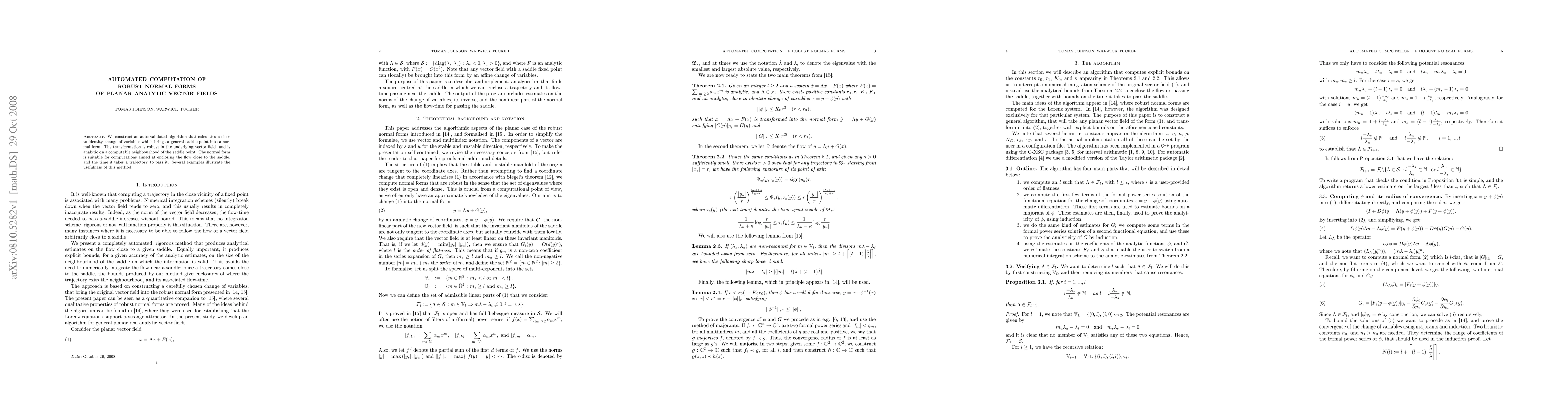 The paper introduces an automated algorithm for computing robust normal forms of planar analytic vector fields near saddle points, ensuring analyticity and robustness in the transformation.