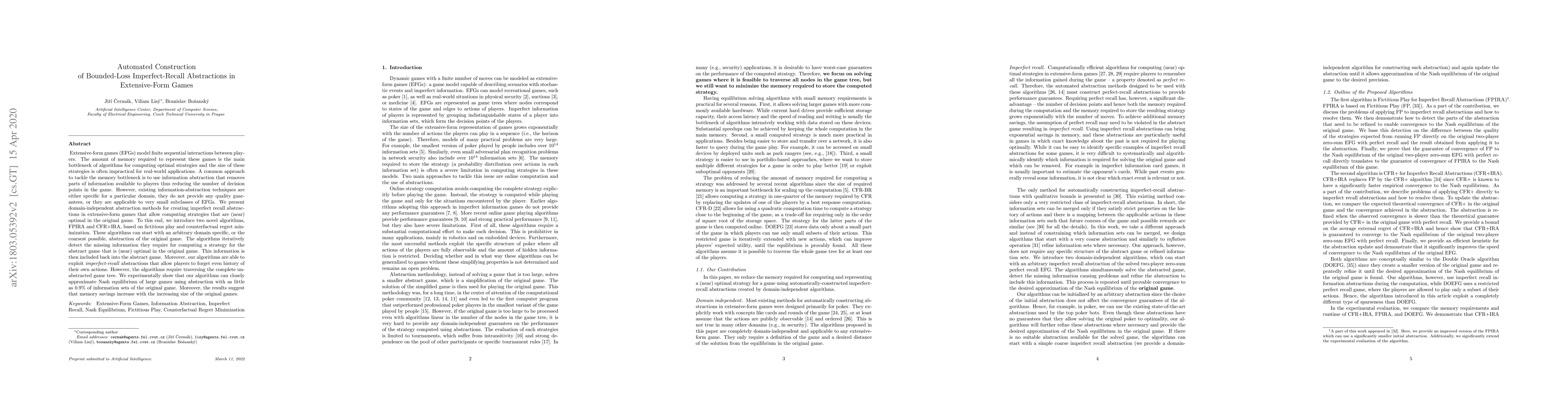 This paper introduces domain-independent algorithms for constructing bounded-loss imperfect-recall abstractions in extensive-form games to reduce memory requirements. The proposed FPIRA and CFR+IRA algorithms iteratively refine abstractions, achieving near-optimal strategies with significantly reduced memory usage, demonstrating effective memory-savings in large games.