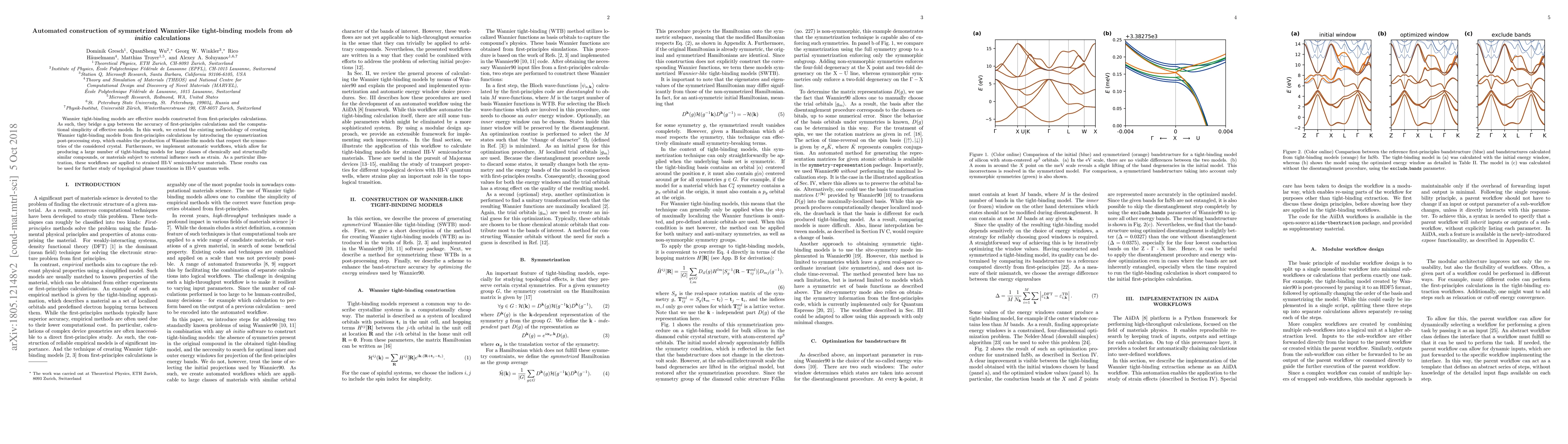 This paper presents an automated method for constructing symmetrized Wannier tight-binding models from ab initio calculations, enhancing the symmetry compliance of the models. The introduced workflows facilitate the generation of numerous effective models for similar materials under various conditions, exemplified by strained III-V semiconductors, aiding in the study of topological phase transitions.