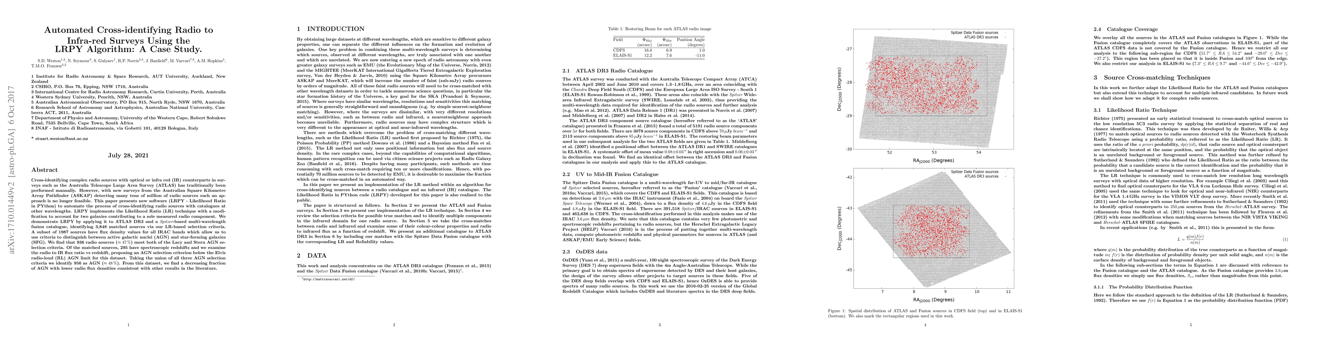This paper introduces LRPY, a new software tool that automates the cross-identification of radio sources with optical and infrared counterparts using the Likelihood Ratio technique. The authors demonstrate LRPY's effectiveness on ATLAS and Spitzer data, identifying 3,848 matched sources and distinguishing between 956 active galactic nuclei and star-forming galaxies.