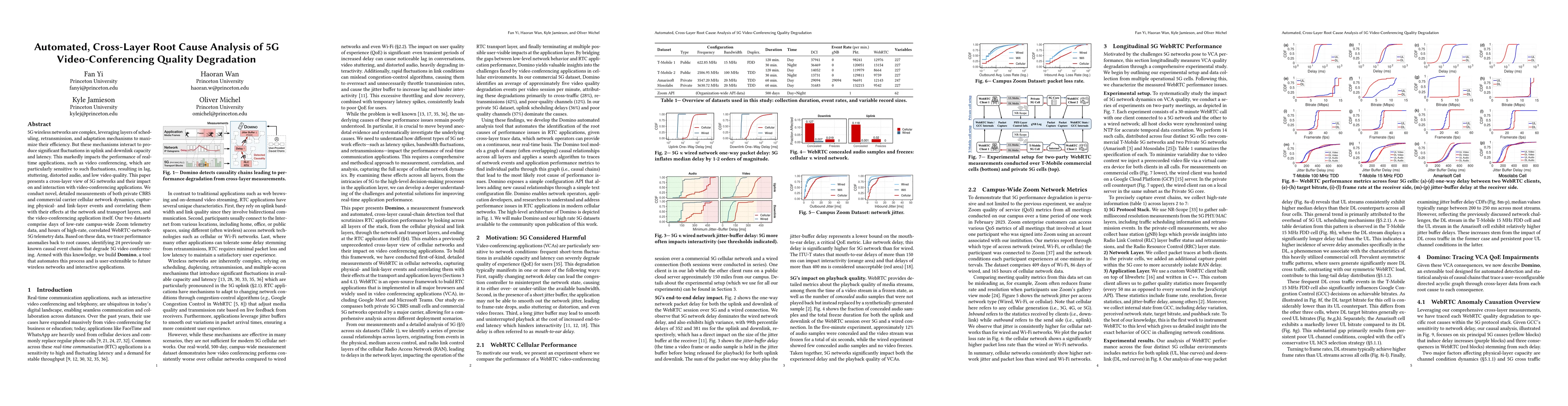 The paper presents a cross-layer view of 5G networks and introduces Domino, an automated root cause analysis tool for performance anomalies in video-conferencing applications over 5G.