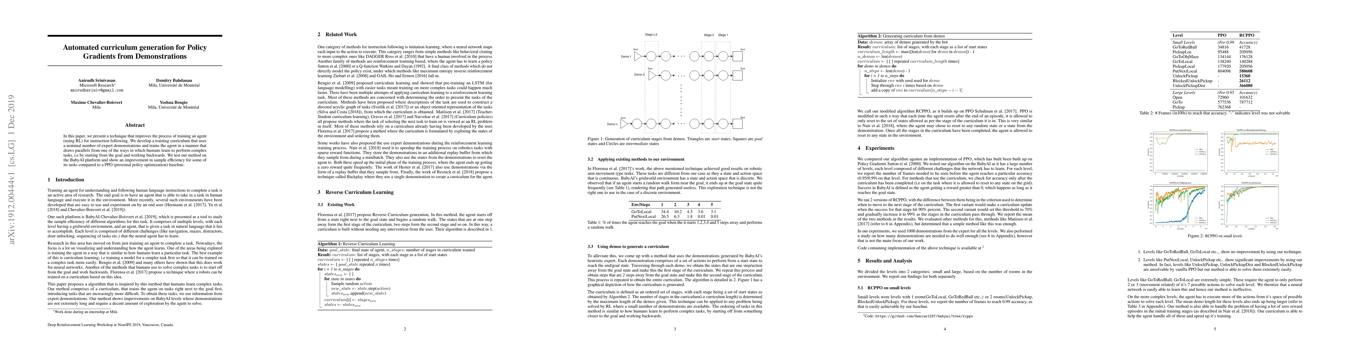 In this paper, we present a technique that improves the process of training an agent (using RL) for instruction following. We develop a training curriculum that uses a nominal number of expert demonstrations and trains the agent in a manner that draws parallels from one of the ways in which humans learn to perform complex tasks, i.e by starting from the goal and working backwards. We test our method on the BabyAI platform and show an improvement in sample efficiency for some of its tasks compared to a PPO (proximal policy optimization) baseline.