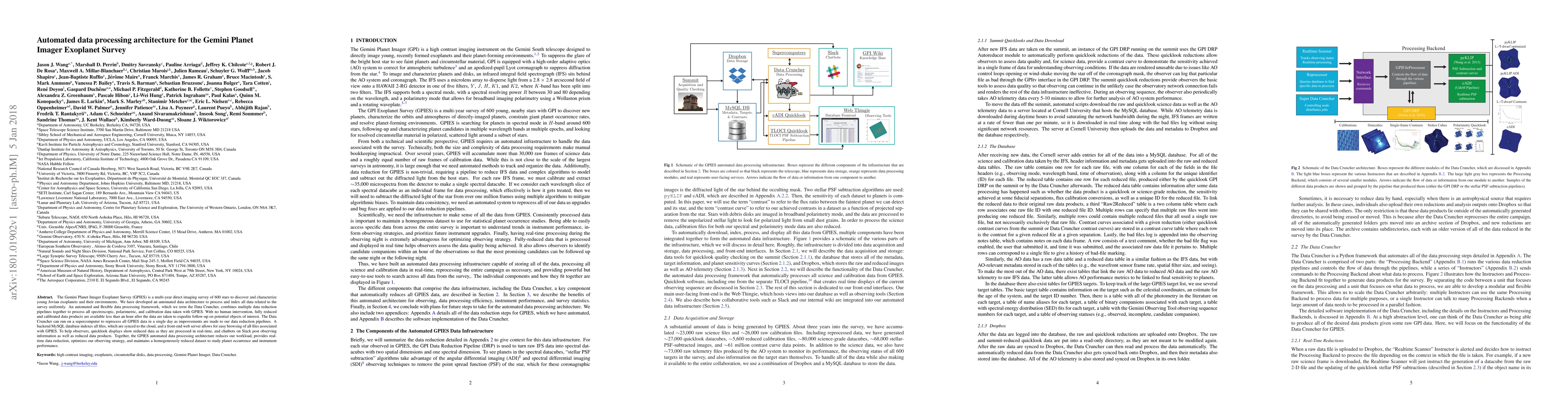 The Gemini Planet Imager Exoplanet Survey (GPIES) utilizes an automated data processing architecture called the Data Cruncher to efficiently process and index all survey data, enabling real-time follow-up on potential exoplanets and optimizing data reduction workflows. The system combines multiple pipelines and utilizes a MySQL database and cloud storage for easy access and browsing.