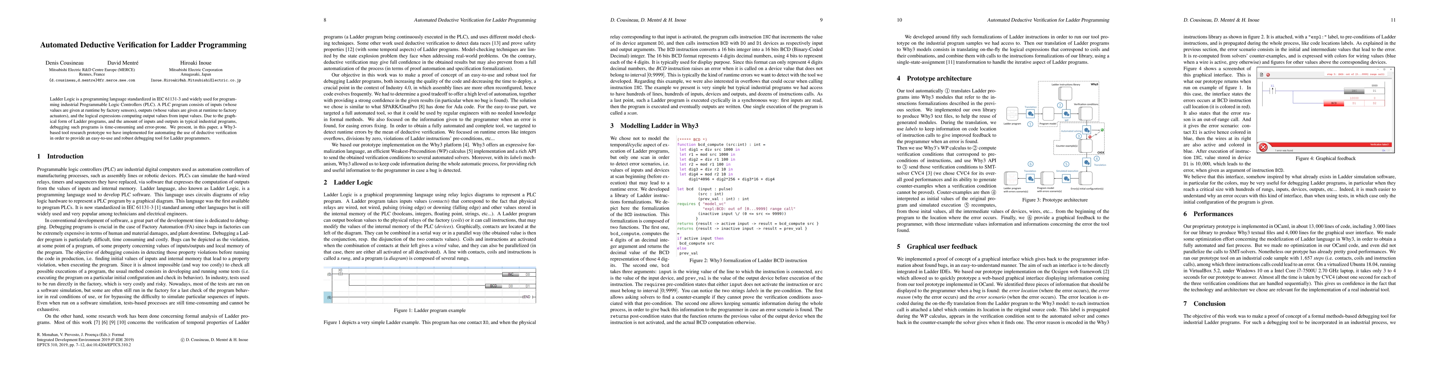 A formal methods-based debugging tool for industrial Ladder programs was proposed