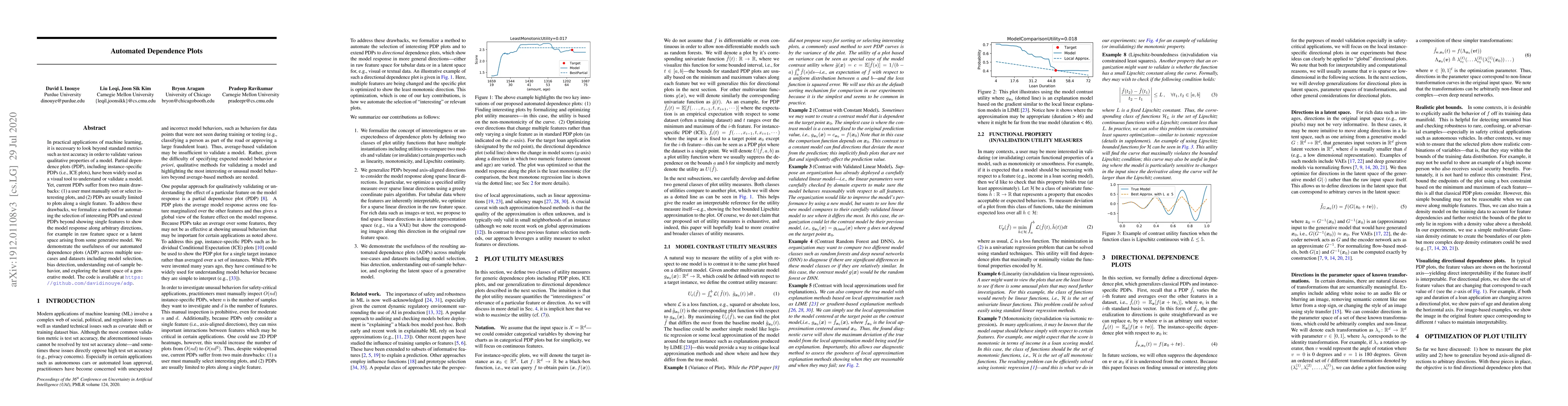 In practical applications of machine learning, it is necessary to look beyond standard metrics such as test accuracy in order to validate various qualitative properties of a model. Partial dependence plots (PDP), including instance-specific PDPs (i.e., ICE plots), have been widely used as a visual tool to understand or validate a model. Yet, current PDPs suffer from two main drawbacks: (1) a user must manually sort or select interesting plots, and (2) PDPs are usually limited to plots along a single feature. To address these drawbacks, we formalize a method for automating the selection of interesting PDPs and extend PDPs beyond showing single features to show the model response along arbitrary directions, for example in raw feature space or a latent space arising from some generative model. We demonstrate the usefulness of our automated dependence plots (ADP) across multiple use-cases and datasets including model selection, bias detection, understanding out-of-sample behavior, and exploring the latent space of a generative model.