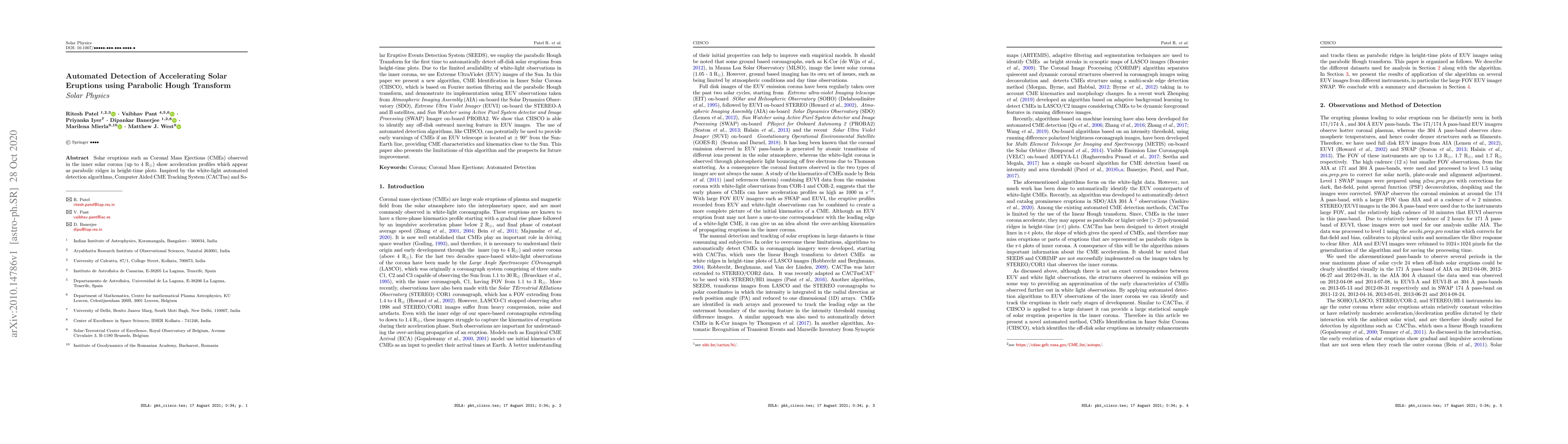 This paper introduces CIISCO, an automated algorithm using the parabolic Hough Transform for detecting accelerating solar eruptions, specifically off-disk Coronal Mass Ejections (CMEs) in Extreme UltraViolet (EUV) images. The algorithm, demonstrated with data from SDO, STEREO, and PROBA2, aims to provide early warnings of CMEs and outlines its limitations and future improvements.