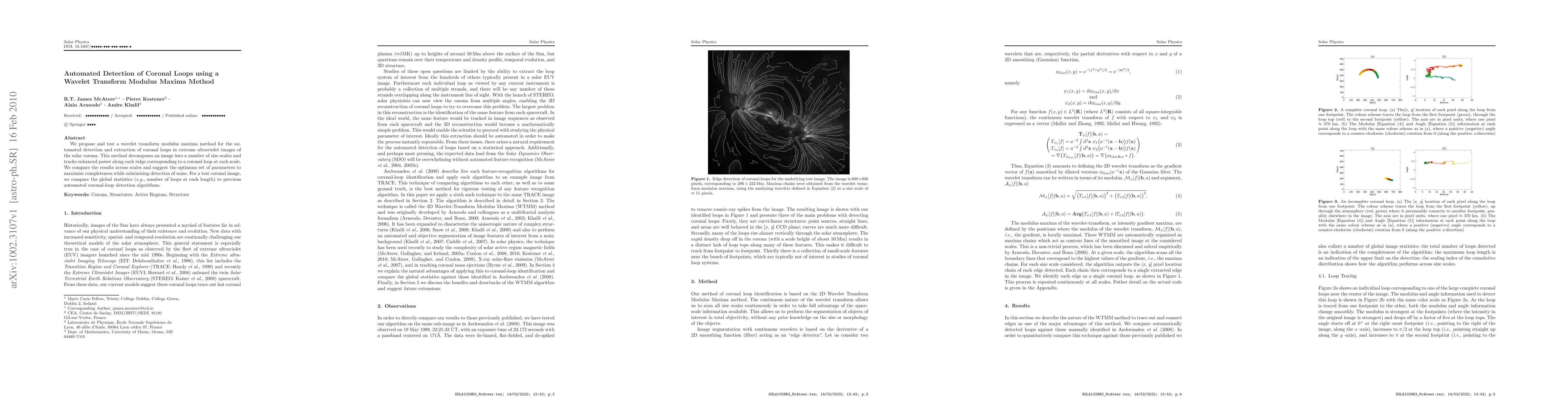 We propose and test a wavelet transform modulus maxima method for the au- tomated detection and extraction of coronal loops in extreme ultraviolet images of the solar corona. This method decomposes an image into a number of size scales and tracks enhanced power along each ridge corresponding to a coronal loop at each scale. We compare the results across scales and suggest the optimum set of parameters to maximise completeness while minimising detection of noise. For a test coronal image, we compare the global statistics (e.g., number of loops at each length) to previous automated coronal-loop detection algorithms.
