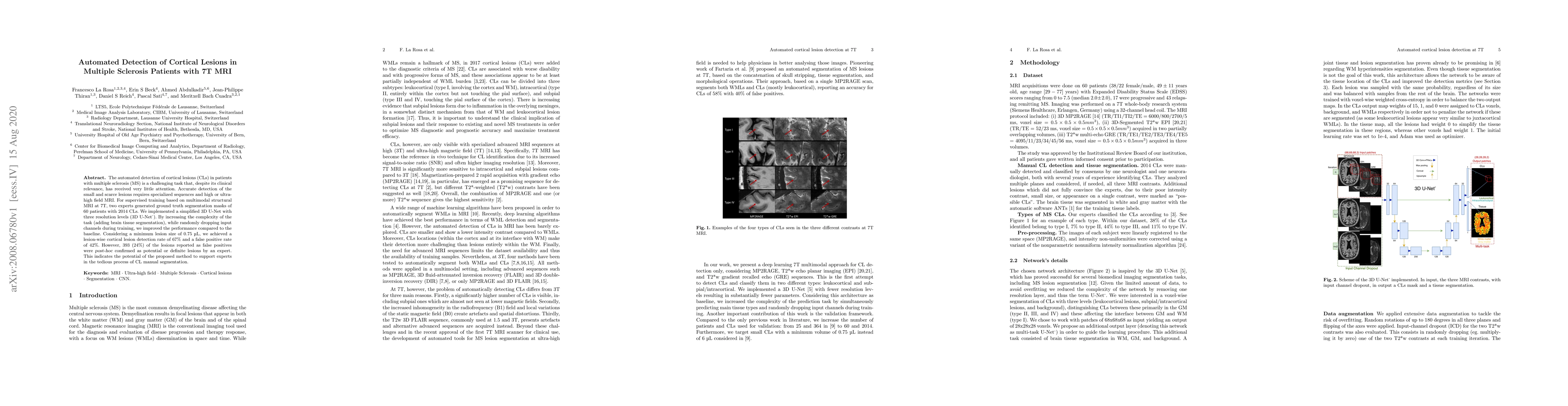This paper presents an automated method using a simplified 3D U-Net to detect cortical lesions in multiple sclerosis patients using 7T MRI, achieving a 67% detection rate and highlighting its potential to assist clinicians in lesion segmentation. Despite a high false positive rate, many false positives were later confirmed as potential lesions, suggesting the method's utility in supporting expert analysis.