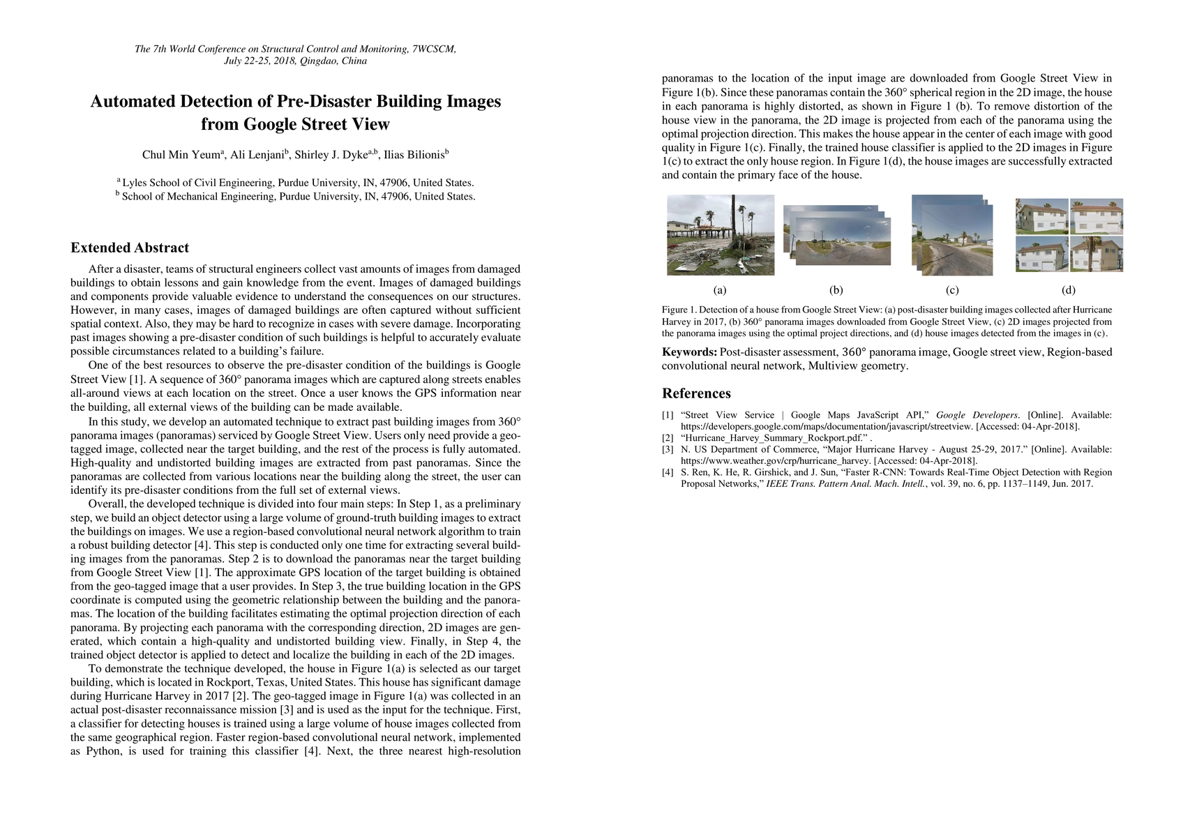 This research develops an automated method to extract pre-disaster building images from Google Street View's 360 panoramas using geo-tagged images near the target building. The technique provides high-quality, undistorted images to assess a building's condition before a disaster.