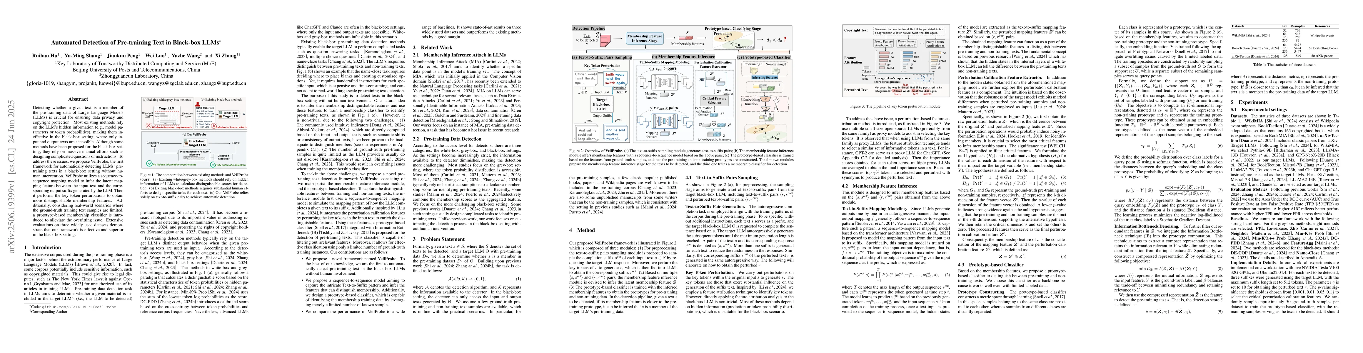 Detecting whether a given text is a member of the pre-training data of Large Language Models (LLMs) is crucial for ensuring data privacy and copyright protection. Most existing methods rely on the LLM's hidden information (e.g., model parameters or token probabilities), making them ineffective in the black-box setting, where only input and output texts are accessible. Although some methods have been proposed for the black-box setting, they rely on massive manual efforts such as designing complicated questions or instructions. To address these issues, we propose VeilProbe, the first framework for automatically detecting LLMs' pre-training texts in a black-box setting without human intervention. VeilProbe utilizes a sequence-to-sequence mapping model to infer the latent mapping feature between the input text and the corresponding output suffix generated by the LLM. Then it performs the key token perturbations to obtain more distinguishable membership features. Additionally, considering real-world scenarios where the ground-truth training text samples are limited, a prototype-based membership classifier is introduced to alleviate the overfitting issue. Extensive evaluations on three widely used datasets demonstrate that our framework is effective and superior in the black-box setting.