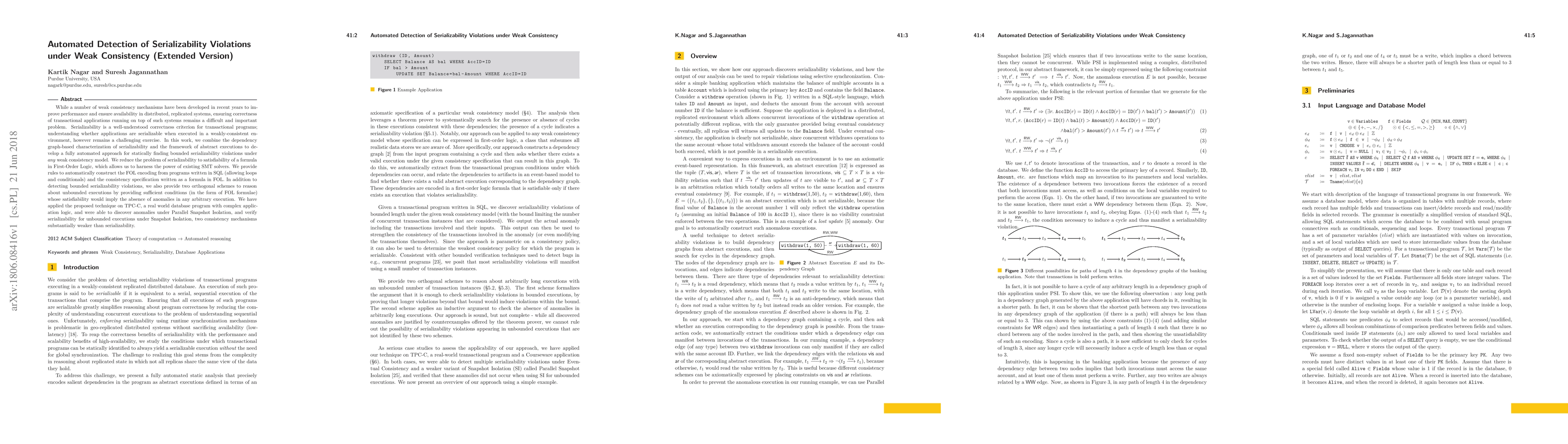 This paper presents an automated method for detecting serializability violations in transactional applications running under weak consistency models. It combines dependency graphs and abstract executions to statically identify bounded violations, leveraging First-Order Logic and SMT solvers, and provides sufficient conditions for reasoning about unbounded executions.