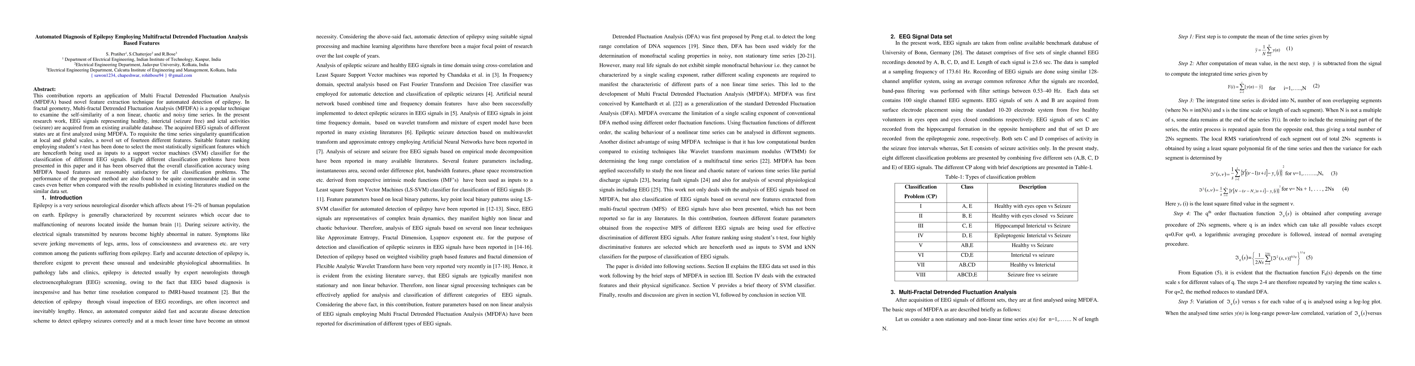 This paper proposes a novel feature extraction method using MultiFractal Detrended Fluctuation Analysis (MFDFA) for automated epilepsy diagnosis from EEG signals. The method achieves high classification accuracy for distinguishing between healthy, interictal, and ictal states, outperforming or matching existing techniques.