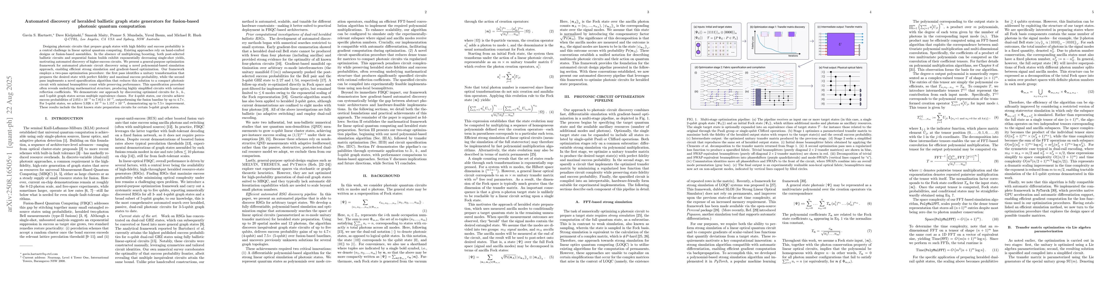 Designing photonic circuits that prepare graph states with high fidelity and success probability is a central challenge in linear optical quantum computing. Existing approaches rely on hand-crafted designs or fusion-based assemblies. In the absence of multiplexing/boosting, both post-selected ballistic circuits and sequential fusion builds exhibit exponentially decreasing single-shot yields, motivating automated discovery of higher-success circuits. We present a general-purpose optimization framework for automated photonic circuit discovery using a novel polynomial-based simulation approach, enabling efficient strong simulation and gradient-based optimization. Our framework employs a two-pass optimization procedure: the first pass identifies a unitary transformation that prepares the desired state with perfect fidelity and maximal success probability, while the second pass implements a novel sparsification algorithm that reduces this solution to a compact photonic circuit with minimal beamsplitter count while preserving performance. This sparsification procedure often reveals underlying mathematical structure, producing highly simplified circuits with rational reflection coefficients. We demonstrate our approach by discovering optimized circuits for $3$-, $4$-, and $5$-qubit graph states across multiple equivalence classes. For 4-qubit states, our circuits achieve success probabilities of $2.053 \times 10^{-3}$ to $7.813 \times 10^{-3}$, outperforming the fusion baseline by up to $4.7 \times$. For 5-qubit states, we achieve $5.926 \times 10^{-5}$ to $1.157 \times 10^{-3}$, demonstrating up to $7.5 \times$ improvement. These results include the first known state preparation circuits for certain 5-qubit graph states.