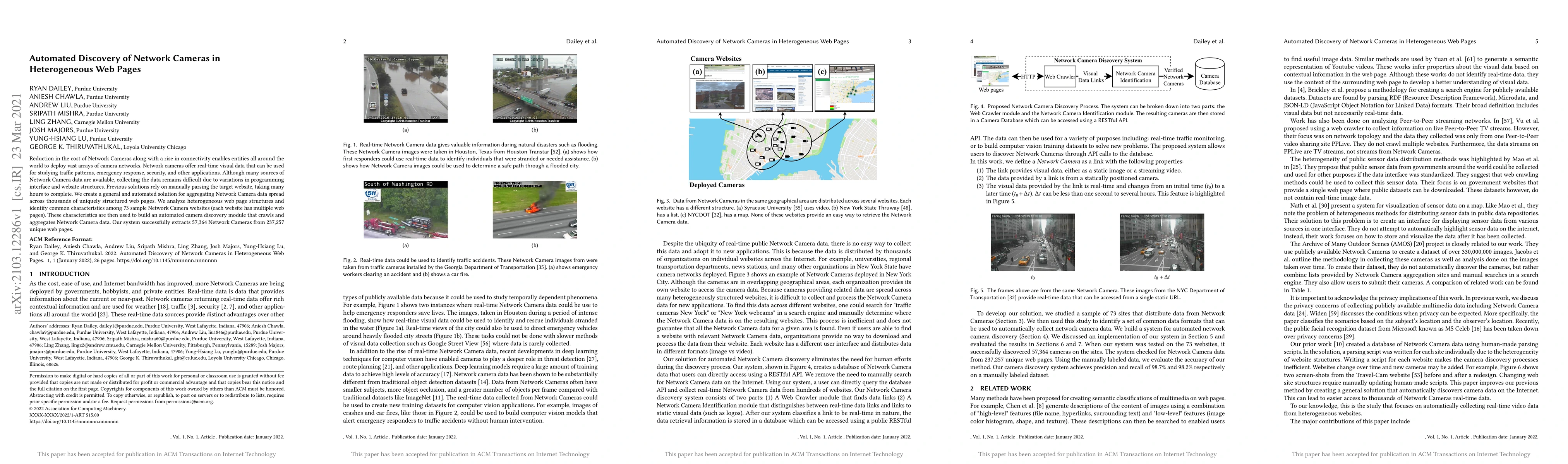This paper presents an automated system for discovering and aggregating real-time data from network cameras across heterogeneous web pages. The system successfully extracts 57,364 cameras from 237,257 pages by analyzing common characteristics among diverse website structures.