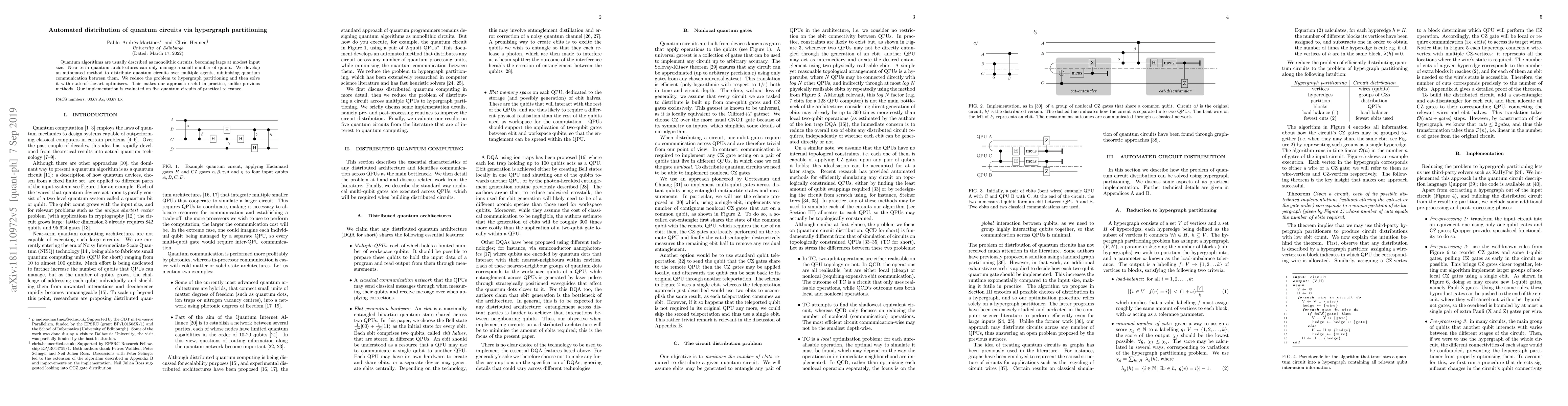 Quantum algorithms are usually described as monolithic circuits, becoming large at modest input size. Near-term quantum architectures can only manage a small number of qubits. We develop an automated method to distribute quantum circuits over multiple agents, minimising quantum communication between them. We reduce the problem to hypergraph partitioning and then solve it with state-of-the-art optimisers. This makes our approach useful in practice, unlike previous methods. Our implementation is evaluated on five quantum circuits of practical relevance.