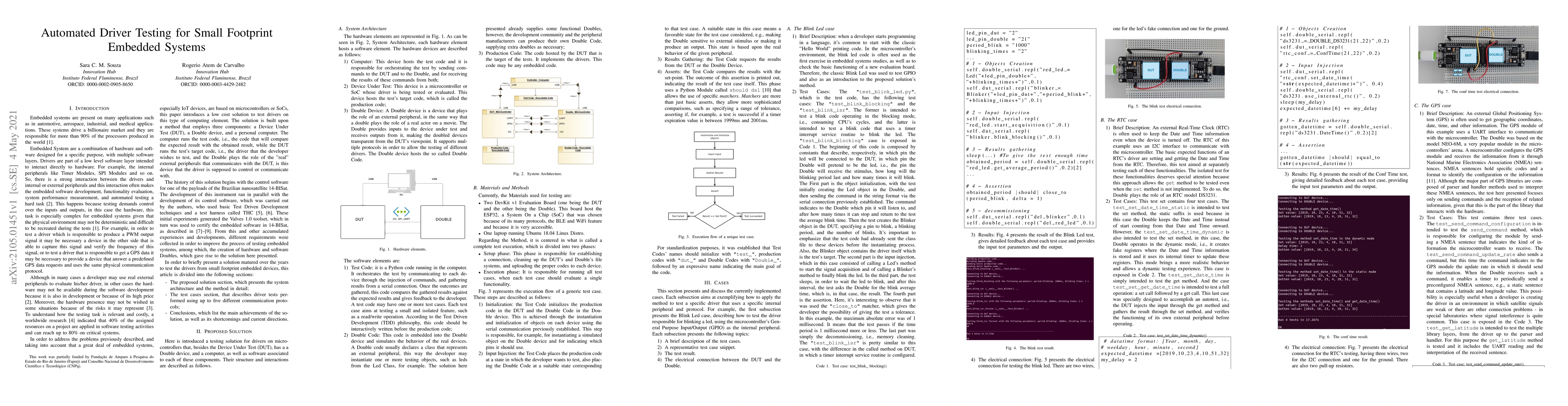 This paper presents an automated testing method for drivers in small footprint embedded systems using a Device Under Test (DUT), a Double device mimicking external peripherals, and a computer orchestrating tests. The solution effectively addresses the challenges of non-deterministic environments and hardware availability, validated through various protocols.