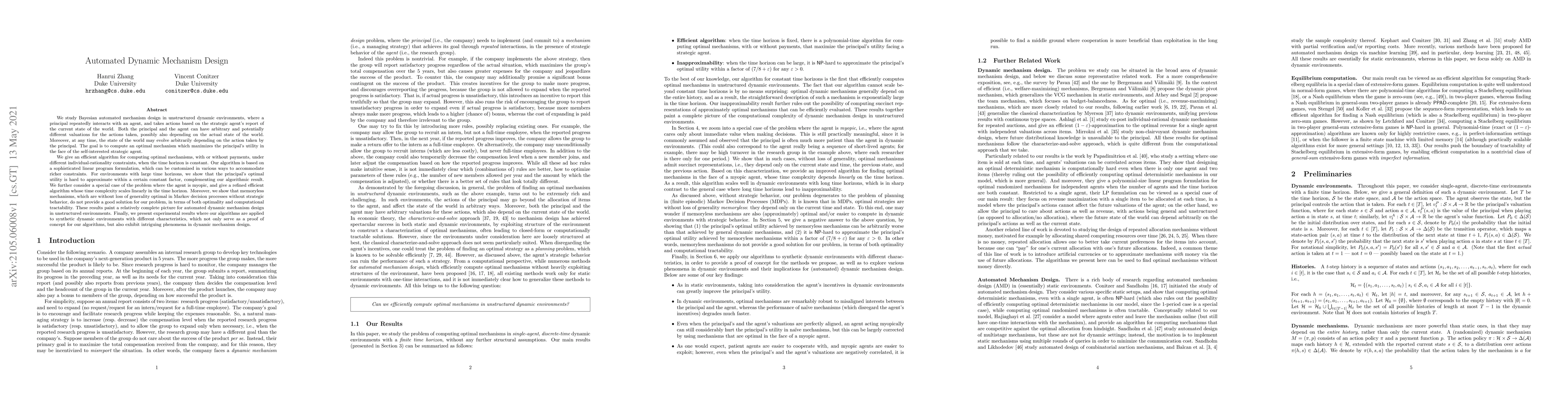This paper introduces an algorithm for designing optimal mechanisms in dynamic environments where a principal interacts with a strategic agent. The algorithm balances optimality with computational tractability, offering insights into automated dynamic mechanism design.