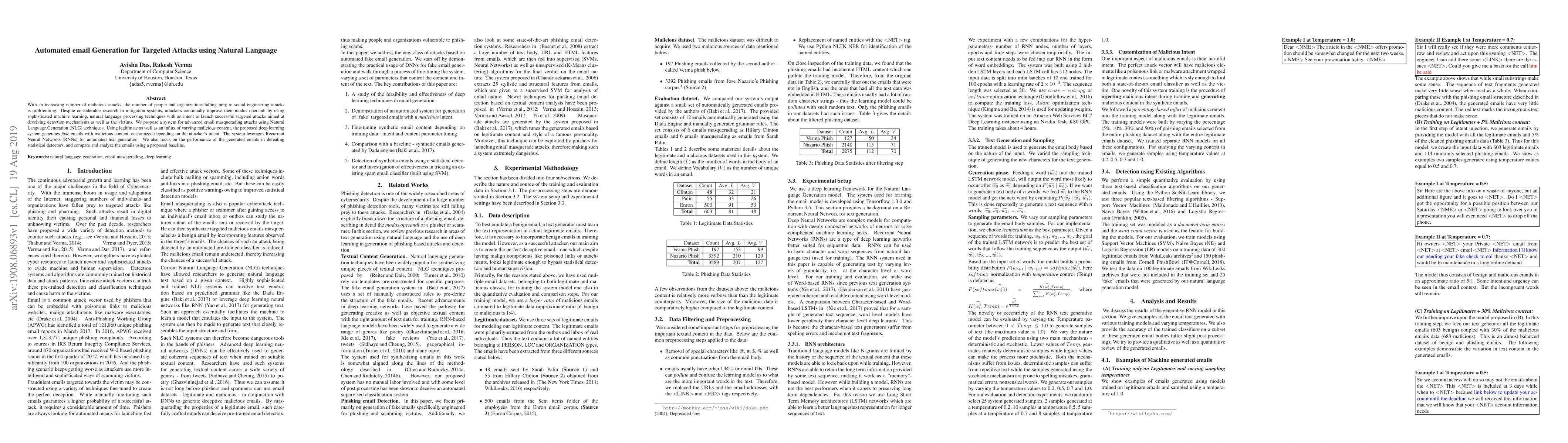 This paper proposes a system using Natural Language Generation and Recurrent Neural Networks to automate the creation of sophisticated, targeted email attacks. The system aims to generate convincing fake emails with malicious intent, capable of evading detection mechanisms and fooling victims.