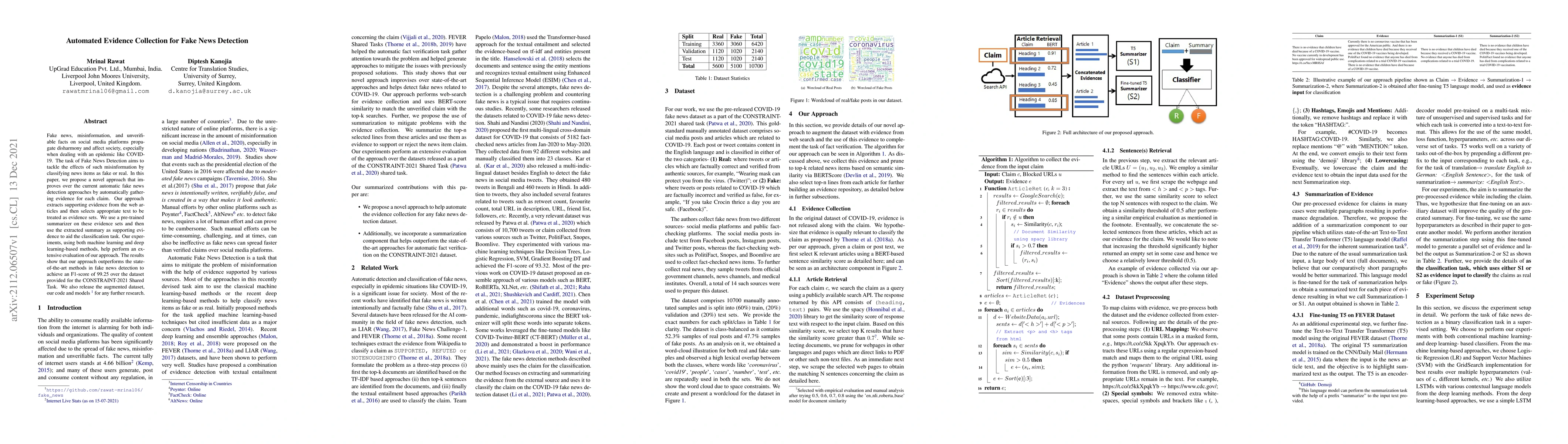 This paper proposes an automated method for collecting evidence to improve fake news detection, achieving an F1-score of 99.25. The approach extracts and summarizes supporting evidence from web articles, which aids in classifying news items as fake or real, outperforming existing methods.
