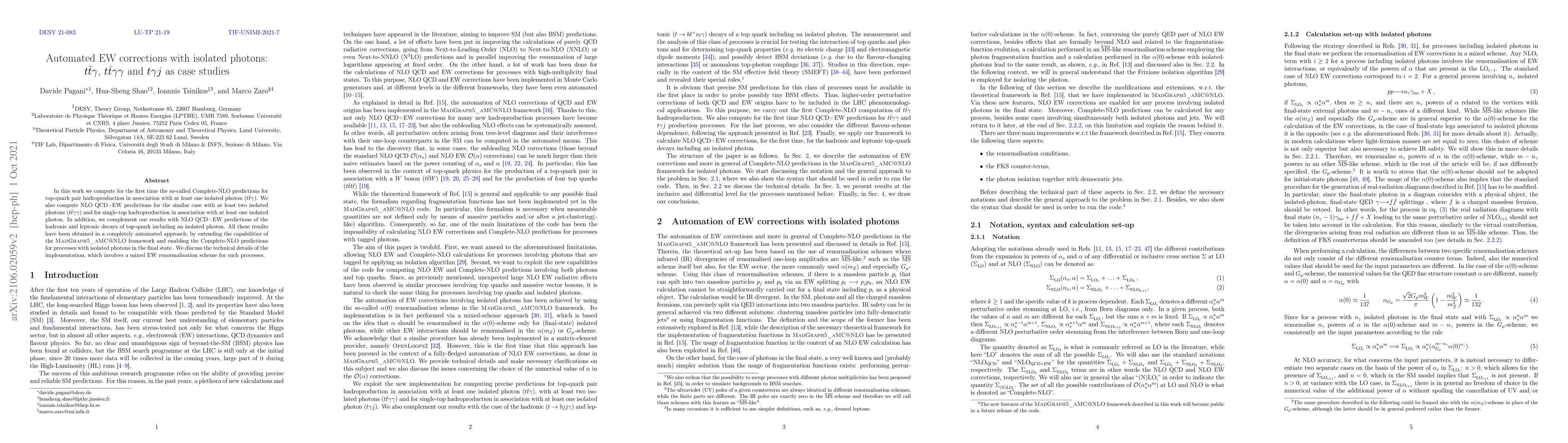 This paper presents the first Complete-NLO predictions for top-quark pair production with isolated photons, extending the MadGraph5_aMC@NLO framework. It also provides NLO QCD+EW predictions for similar processes with two photons and single-top production with one photon, all computed using an automated approach.