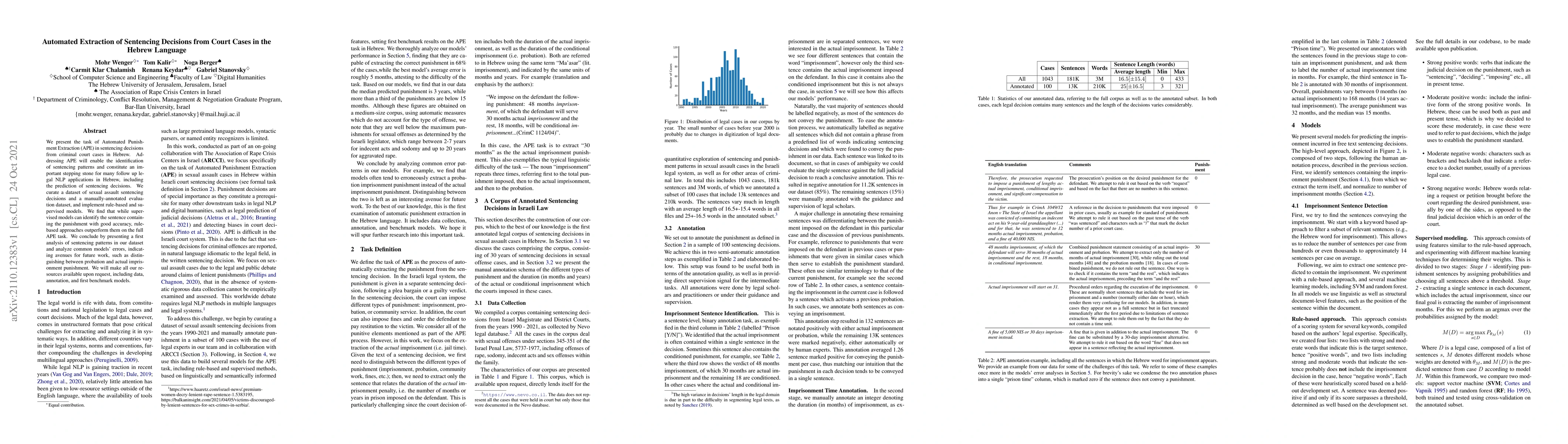 Researchers developed an automated system to extract sentencing decisions from Hebrew court cases, finding that rule-based approaches outperformed supervised models in accuracy.