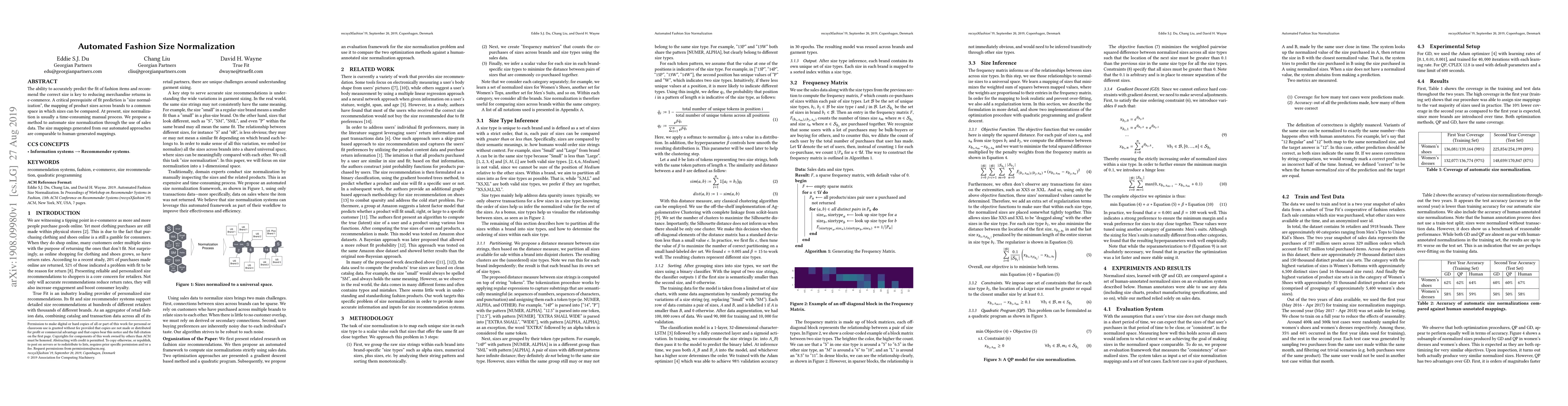 The ability to accurately predict the fit of fashion items and recommend the correct size is key to reducing merchandise returns in e-commerce. A critical prerequisite of fit prediction is size normalization, the mapping of product sizes across brands to a common space in which sizes can be compared. At present, size normalization is usually a time-consuming manual process. We propose a method to automate size normalization through the use of salesdata. The size mappings generated from our automated approaches are comparable to human-generated mappings.