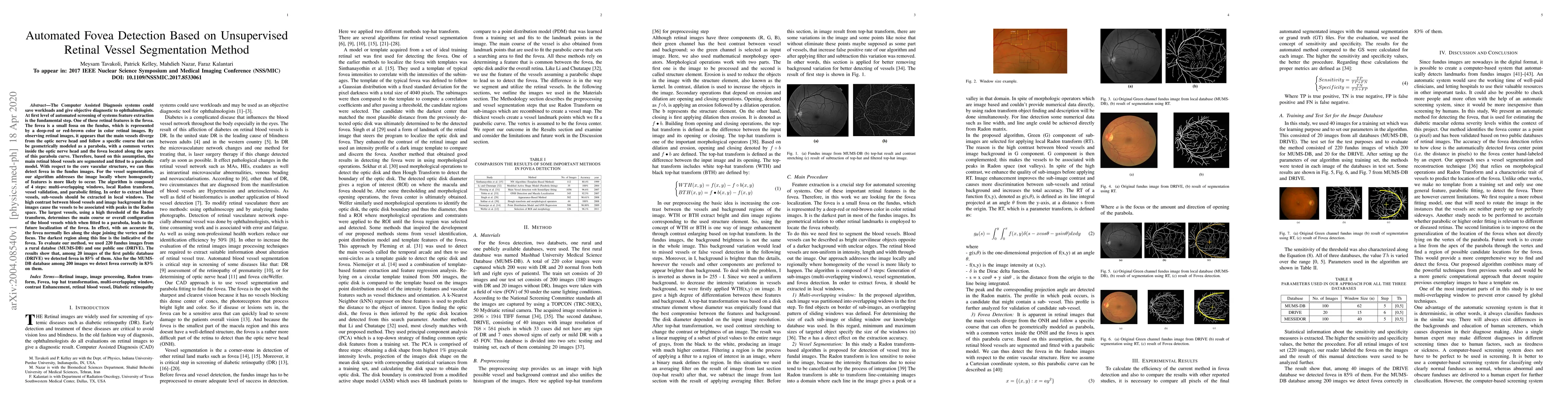 Researchers developed an automated method to detect the fovea in retinal images using unsupervised vessel segmentation, achieving accurate detection rates of 85% and 83% on public databases.