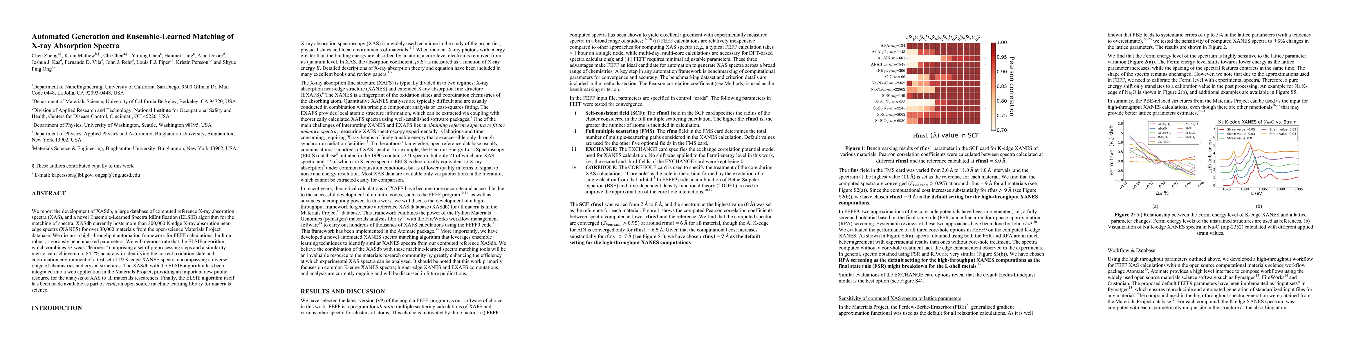 We report the development of XASdb, a large database of computed reference X-ray absorption spectra (XAS), and a novel Ensemble-Learned Spectra IdEntification (ELSIE) algorithm for the matching of spectra. XASdb currently hosts more than 300,000 K-edge X-ray absorption near-edge spectra (XANES) for over 30,000 materials from the open-science Materials Project database. We discuss a high-throughput automation framework for FEFF calculations, built on robust, rigorously benchmarked parameters. We will demonstrate that the ELSIE algorithm, which combines 33 weak "learners" comprising a set of preprocessing steps and a similarity metric, can achieve up to 84.2% accuracy in identifying the correct oxidation state and coordination environment of a test set of 19 K-edge XANES spectra encompassing a diverse range of chemistries and crystal structures. The XASdb with the ELSIE algorithm has been integrated into a web application in the Materials Project, providing an important new public resource for the analysis of XAS to all materials researchers. Finally, the ELSIE algorithm itself has been made available as part of Veidt, an open source machine learning library for materials science.