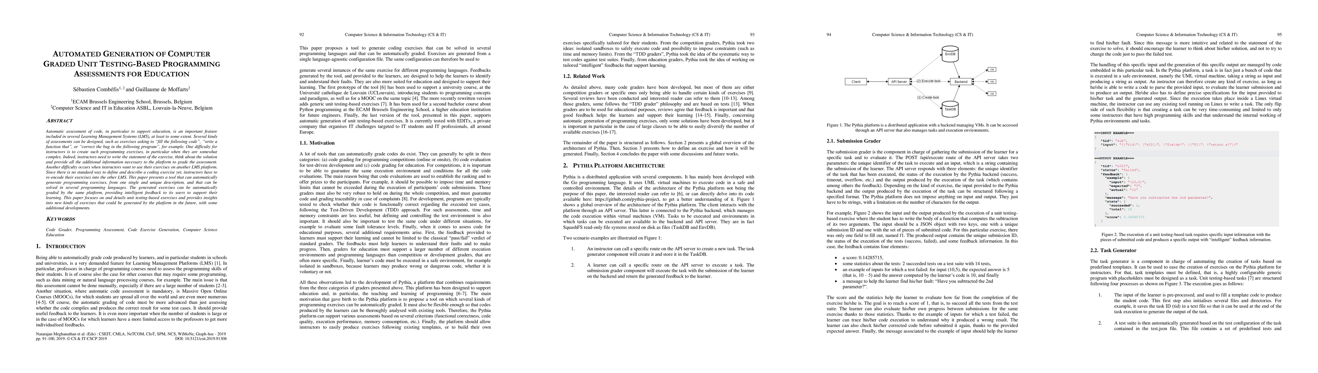 Automatic assessment of code, in particular to support education, is an important feature included in several Learning Management Systems (LMS), at least to some extent. Several kinds of assessments can be designed, such as exercises asking to "fill the following code", "write a function that", or "correct the bug in the following program", for example. One difficulty for instructors is to create such programming exercises, in particular when they are somewhat complex. Indeed, instructors need to write the statement of the exercise, think about the solution and provide all the additional information necessary to the platform to grade the assessment. Another difficulty occurs when instructors want to use their exercises on another LMS platform. Since there is no standard way to define and describe a coding exercise yet, instructors have to re-encode their exercises into the other LMS. This paper presents a tool that can automatically generate programming exercises, from one single and unique description, and that can be solved in several programming languages. The generated exercises can be automatically graded by the same platform, providing intelligent feedback to its users to support their learning. This paper focuses on and details unit testing-based exercises and provides insights into new kinds of exercises that could be generated by the platform in the future, with some additional developments.