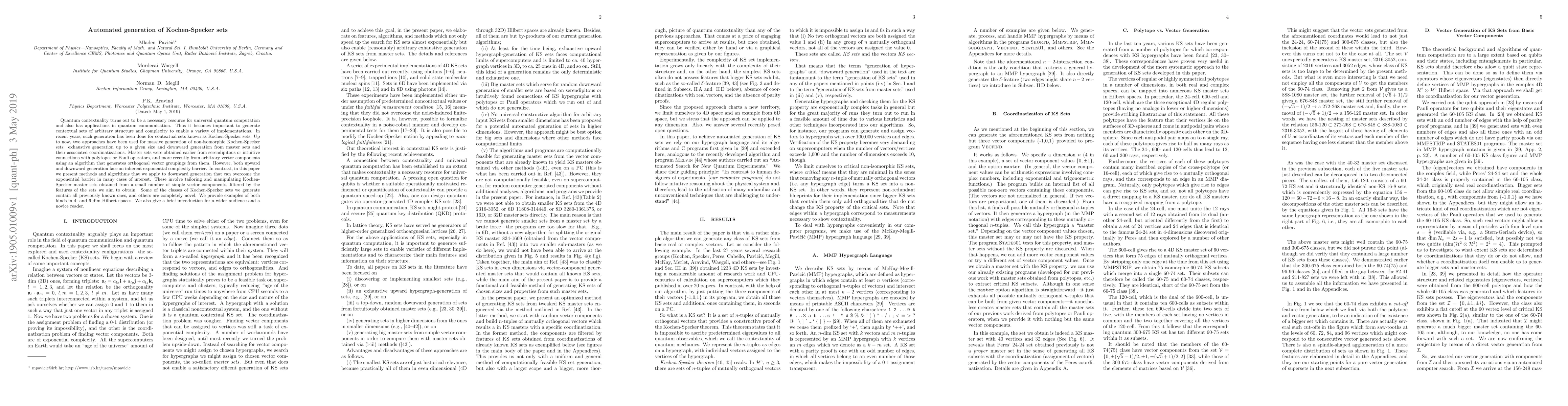 The research presents methods and algorithms for downward generation of Kochen-Specker (KS) sets, overcoming the exponential complexity barrier in many cases of interest by tailoring and manipulating Kochen-Specker master sets from a small number of simple vector components.