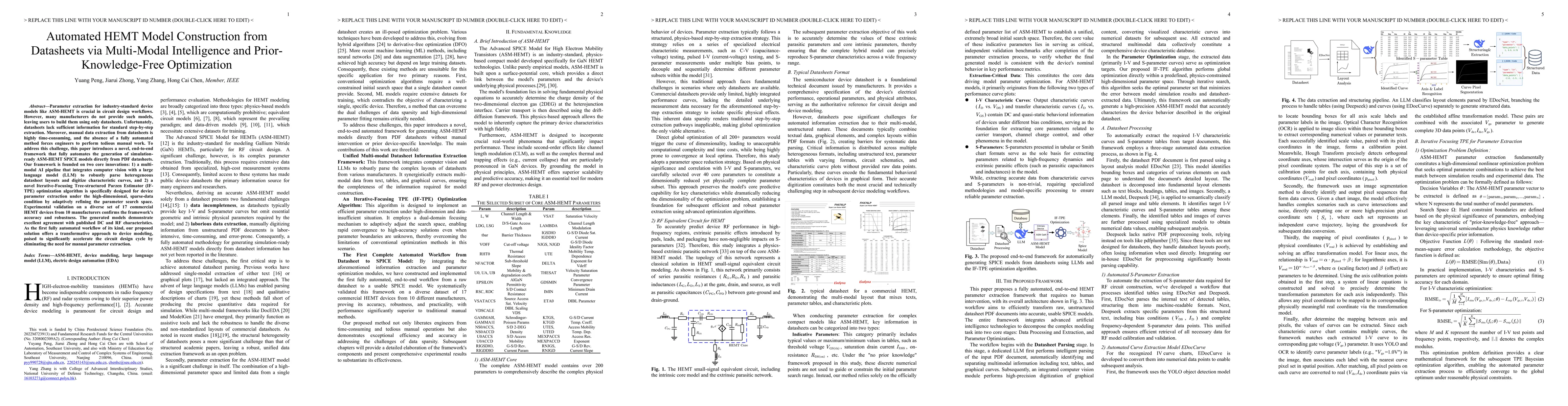 This paper presents an automated framework that generates simulation-ready ASM-HEMT SPICE models directly from PDF datasheets. It uses a multi-modal AI pipeline combining computer vision and large language models to extract data, and a novel optimization algorithm to extract device parameters. Experimental results show high accuracy and robustness across diverse HEMT devices, promising to significantly speed up circuit design cycles by eliminating manual parameter extraction.