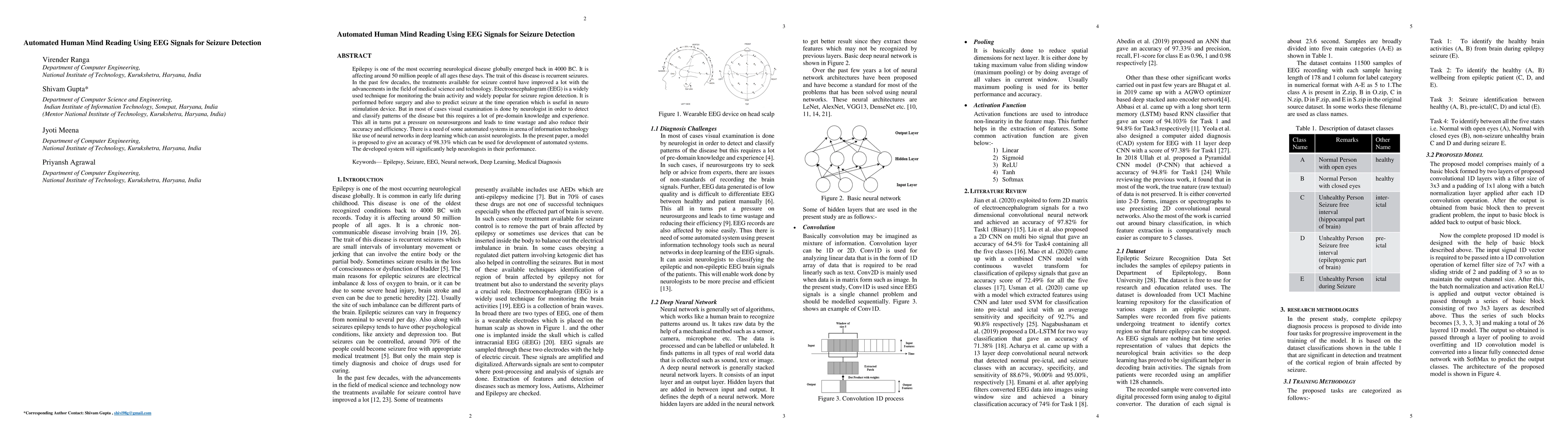 Epilepsy is one of the most occurring neurological disease globally emerged back in 4000 BC. It is affecting around 50 million people of all ages these days. The trait of this disease is recurrent seizures. In the past few decades, the treatments available for seizure control have improved a lot with the advancements in the field of medical science and technology. Electroencephalogram (EEG) is a widely used technique for monitoring the brain activity and widely popular for seizure region detection. It is performed before surgery and also to predict seizure at the time operation which is useful in neuro stimulation device. But in most of cases visual examination is done by neurologist in order to detect and classify patterns of the disease but this requires a lot of pre-domain knowledge and experience. This all in turns put a pressure on neurosurgeons and leads to time wastage and also reduce their accuracy and efficiency. There is a need of some automated systems in arena of information technology like use of neural networks in deep learning which can assist neurologists. In the present paper, a model is proposed to give an accuracy of 98.33% which can be used for development of automated systems. The developed system will significantly help neurologists in their performance.