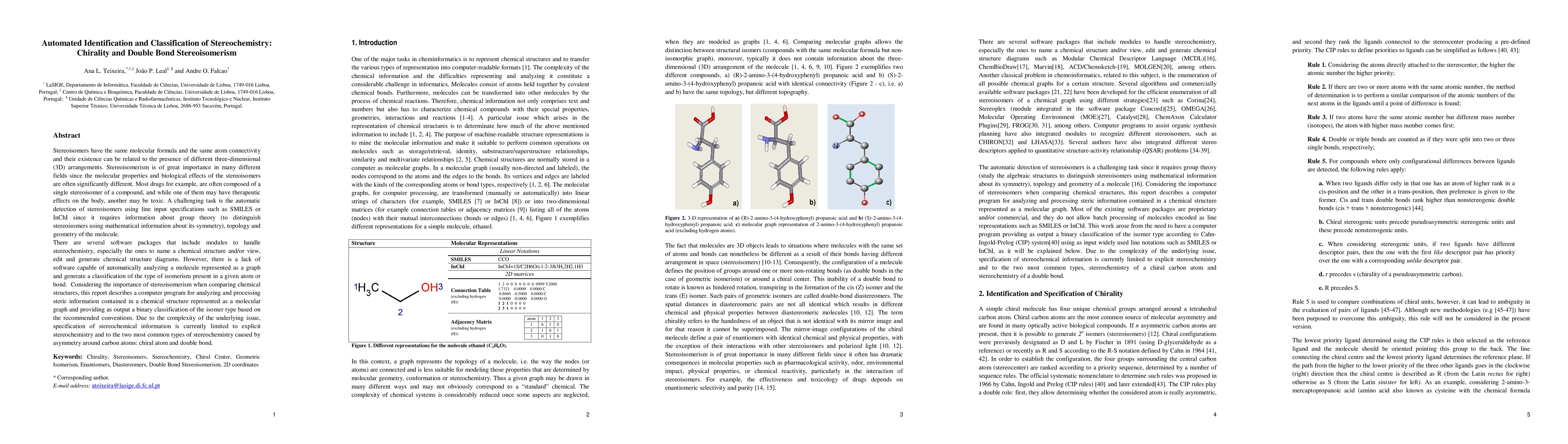 This paper presents a computer program designed to automatically identify and classify stereochemistry, specifically focusing on chirality and double bond stereoisomerism in molecular graphs. The tool aims to address the lack of software for automatic analysis of stereoisomerism, providing a binary classification of isomer types based on recommended conventions.
