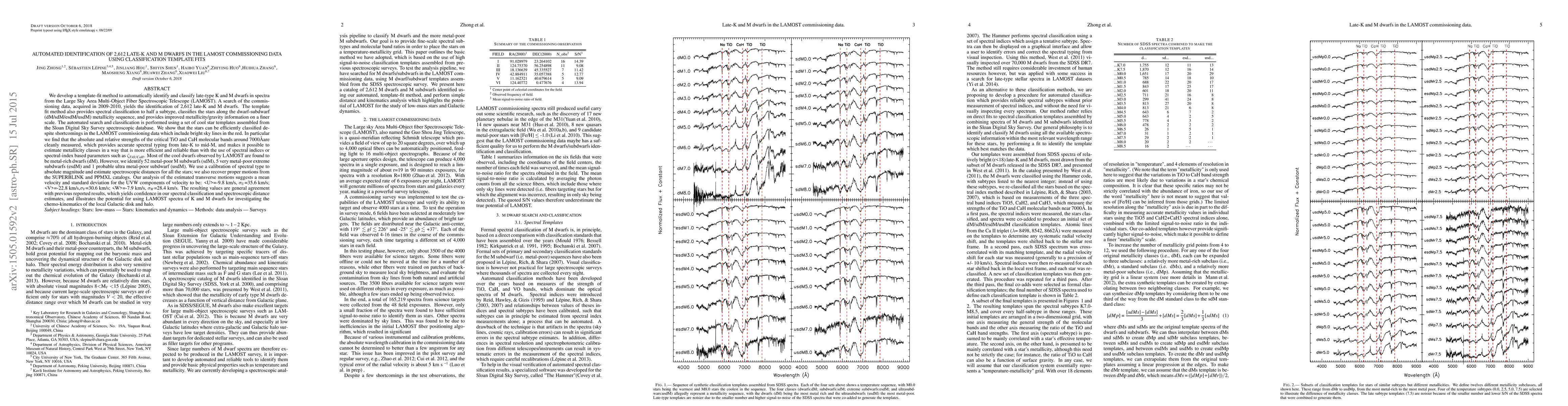 This paper presents an automated template-fit method to classify 2612 late-K and M dwarfs in LAMOST commissioning data, achieving accurate spectral typing and metallicity estimates. The method uses cool star templates from the SDSS, and the results show good agreement with previous findings, highlighting the potential for LAMOST data in studying the Galactic disk and halo.
