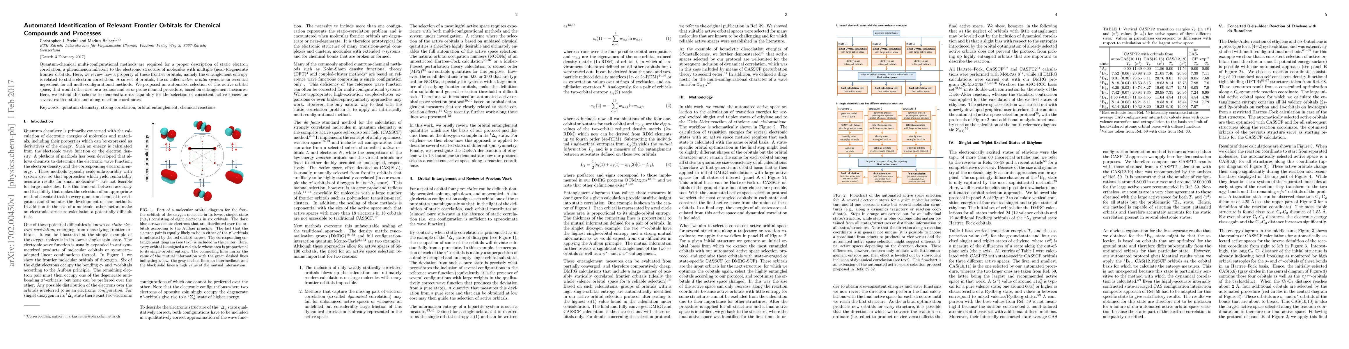This paper reviews the relationship between entanglement entropy and static electron correlation in quantum-chemical multi-configurational methods, focusing on frontier orbitals. It proposes an automated method for selecting the active orbital space based on entanglement measures, extending its application to multiple excited states and reaction coordinates.