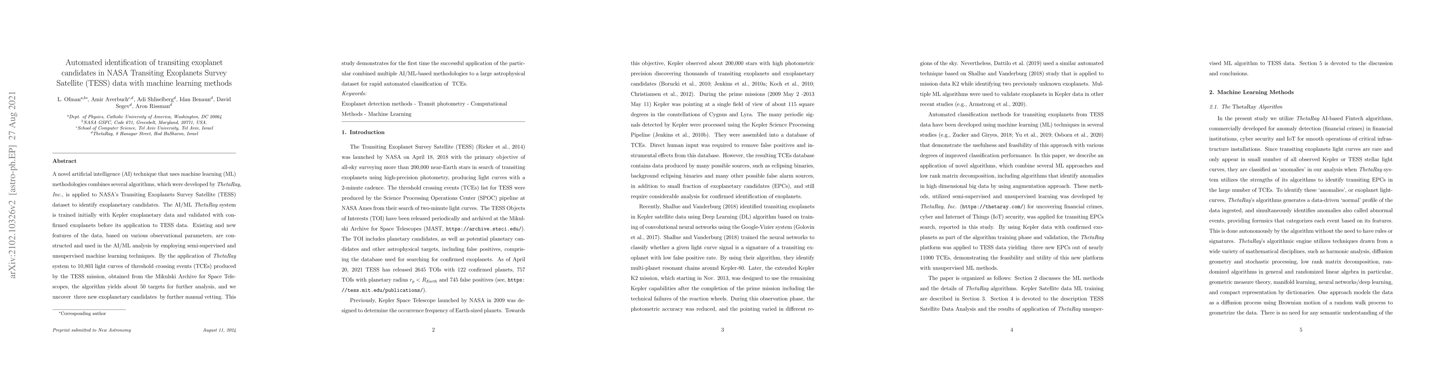 This paper presents a machine learning system developed by ThetaRay, Inc., to identify exoplanet candidates in NASA's TESS data, trained on Kepler data and validated with confirmed exoplanets. The system analyzes 10,803 light curves, yielding 50 targets and uncovering three new exoplanetary candidates, showcasing the effectiveness of AI/ML in large-scale astrophysical data analysis.